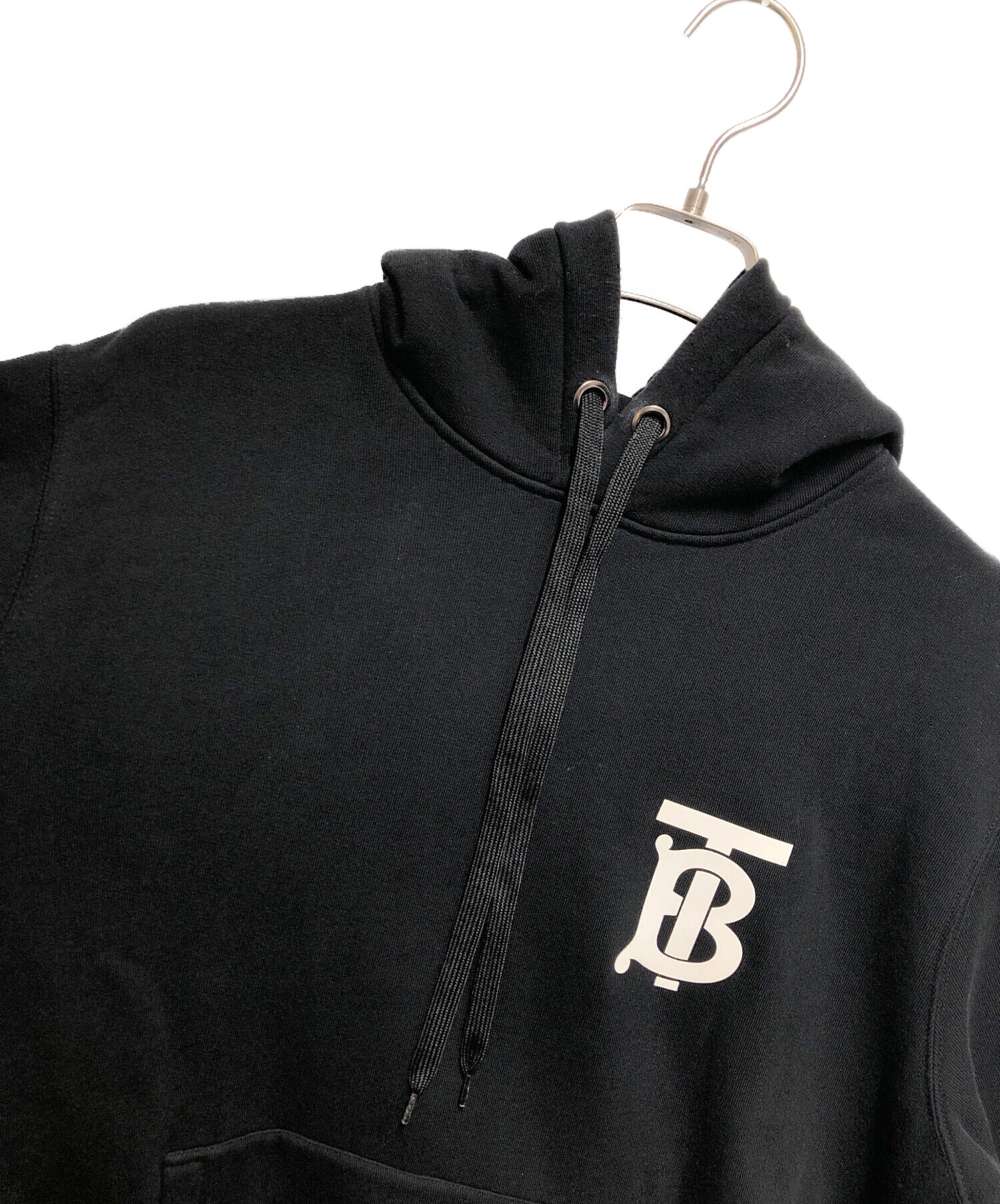 • BURBERRY(バーバリー)BURBERRY (バーバリー) モノグラムモチーフ コットン フーディー ブラック サイズ:Mの古着・服飾アイテム 上部ヤブレ有