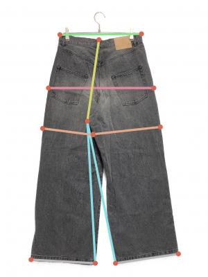 ウエスト周り約84cm ヒップ周り約114cm もも周り約77.4cm 裾周り約63.5cm 股上(後ろ)約47cm 股下(後ろ)約77cm