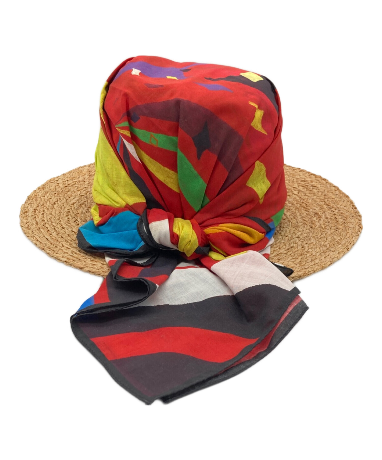 スカーフ付ラフィアハット