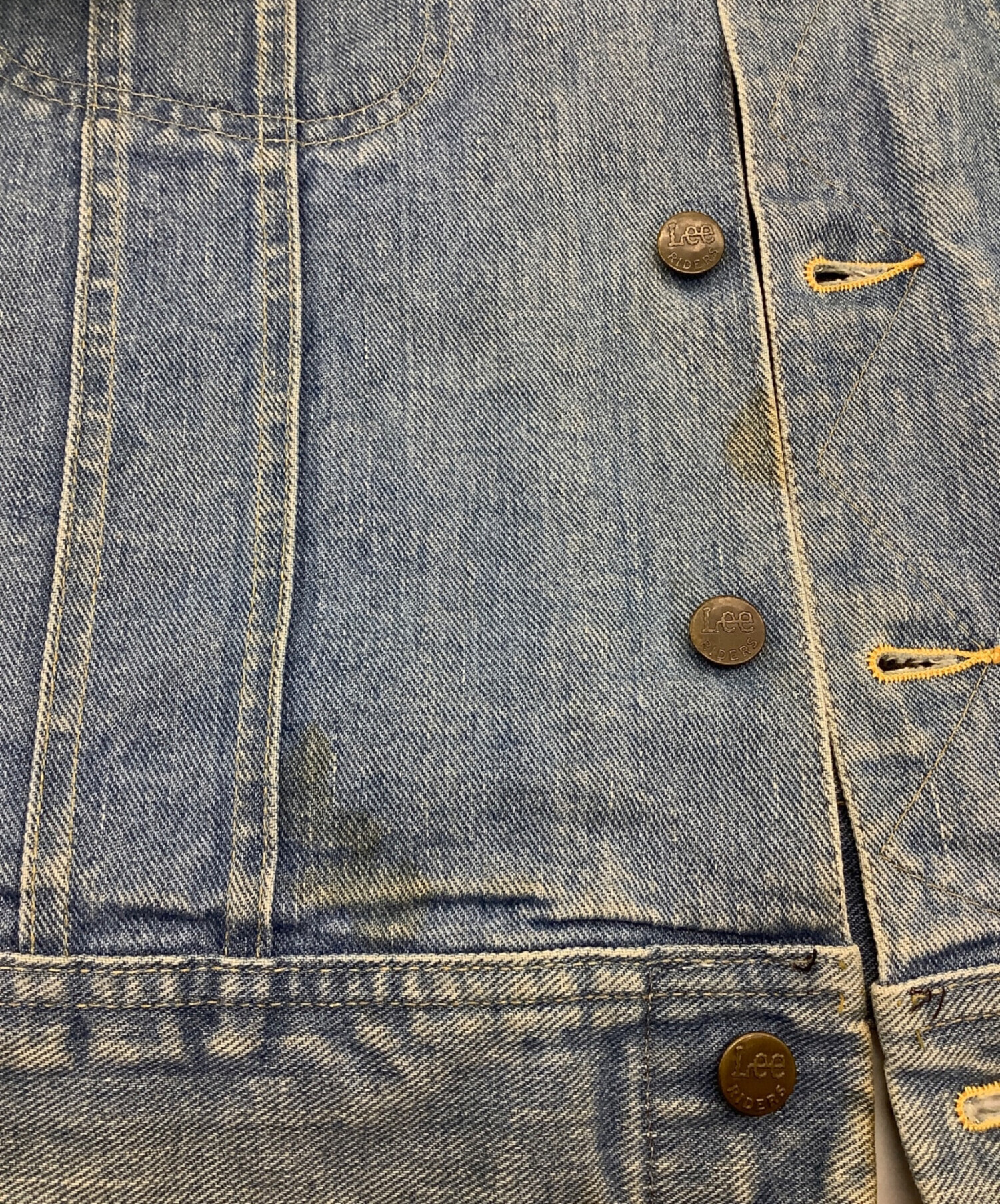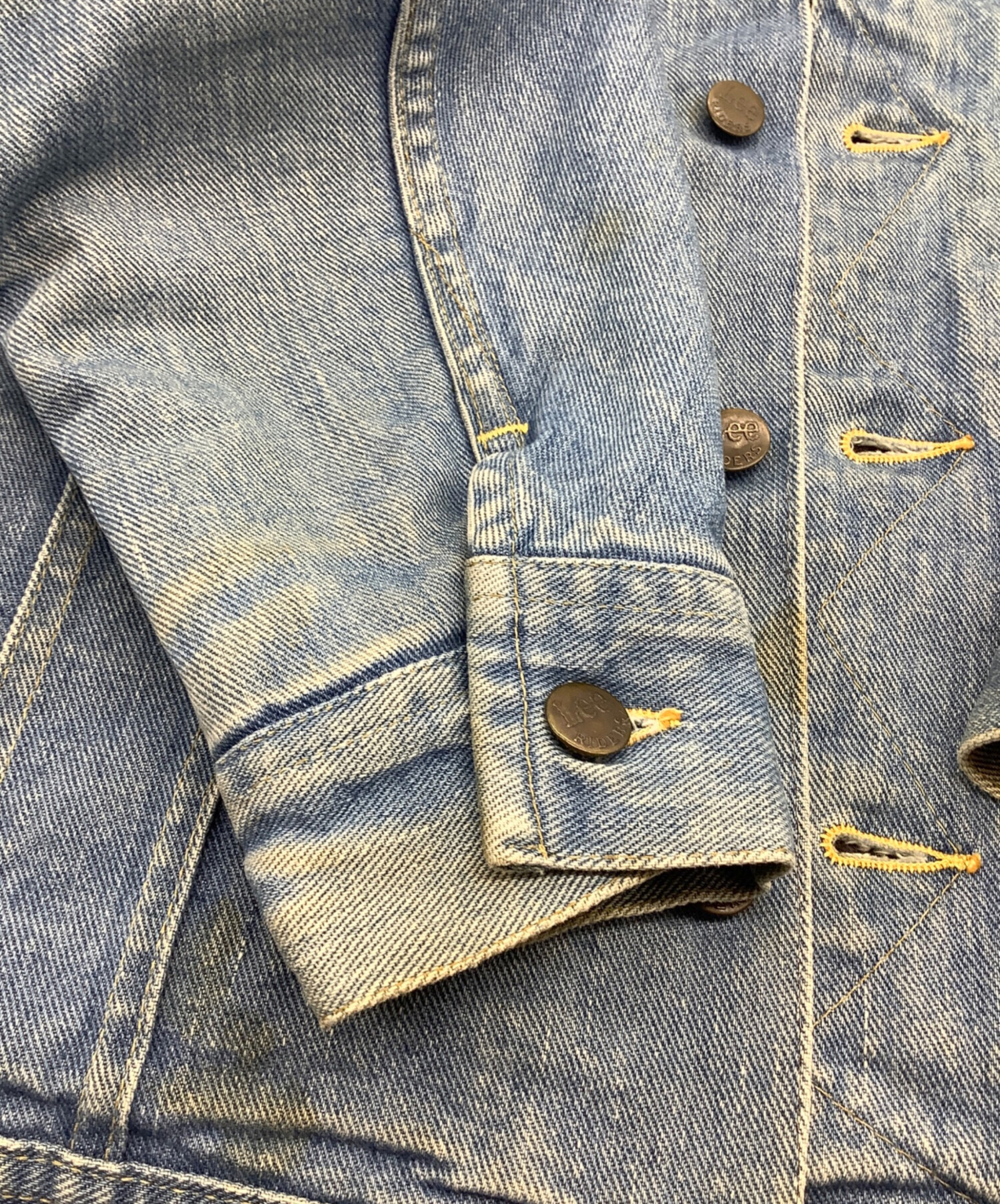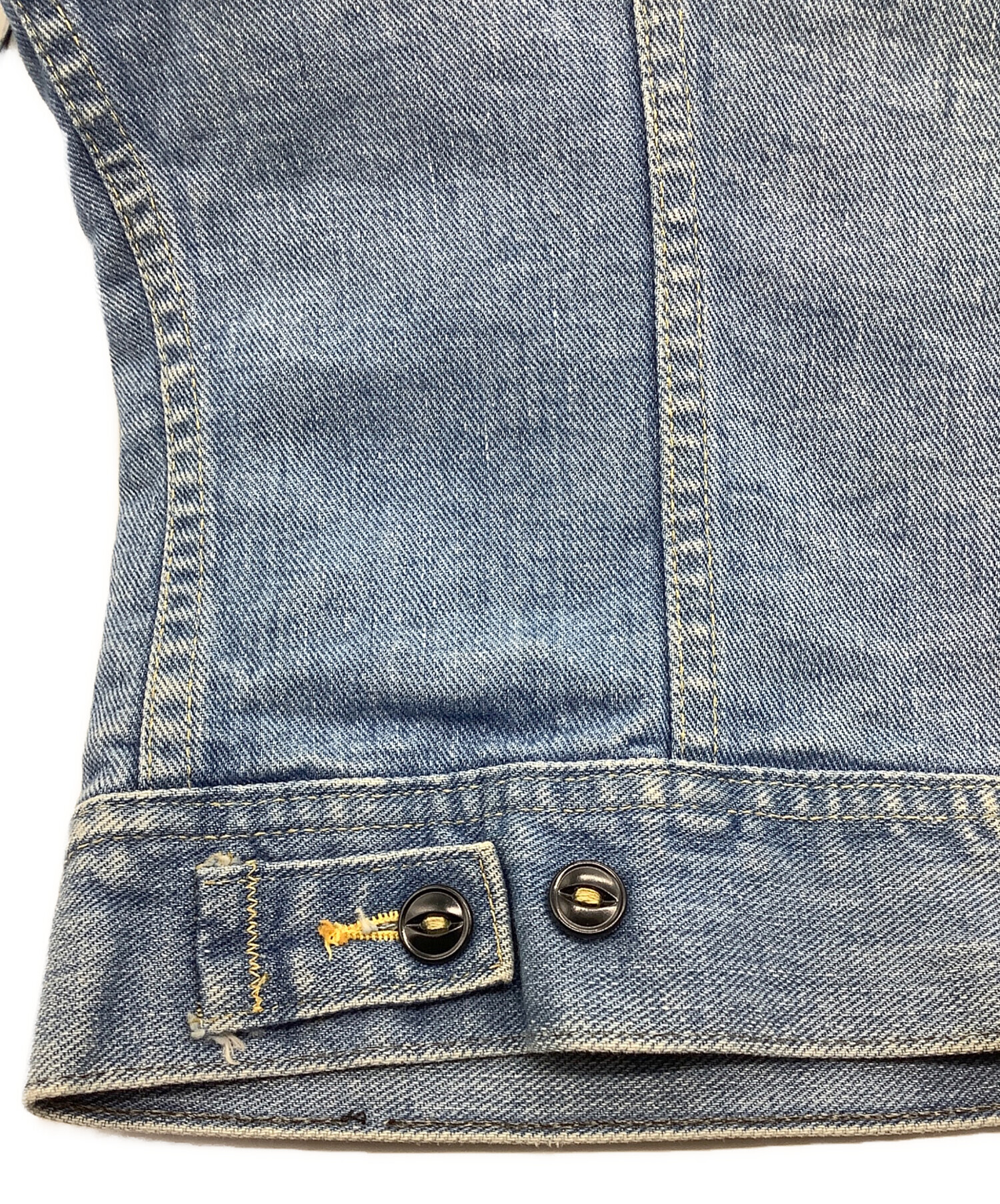| 状態 | 商品の状態としましては、シミ・ヨゴレ多数、キズ、後ろ身頃ボタンリペア、ホツレ、タグ印字薄れ、内部にホツレ箇所・ボタン内側にサビなど使用感がございます。 また店頭にて展示販売を行っている為、記載に無い細かなキズ、汚れが見受けられる場合がございます。 |