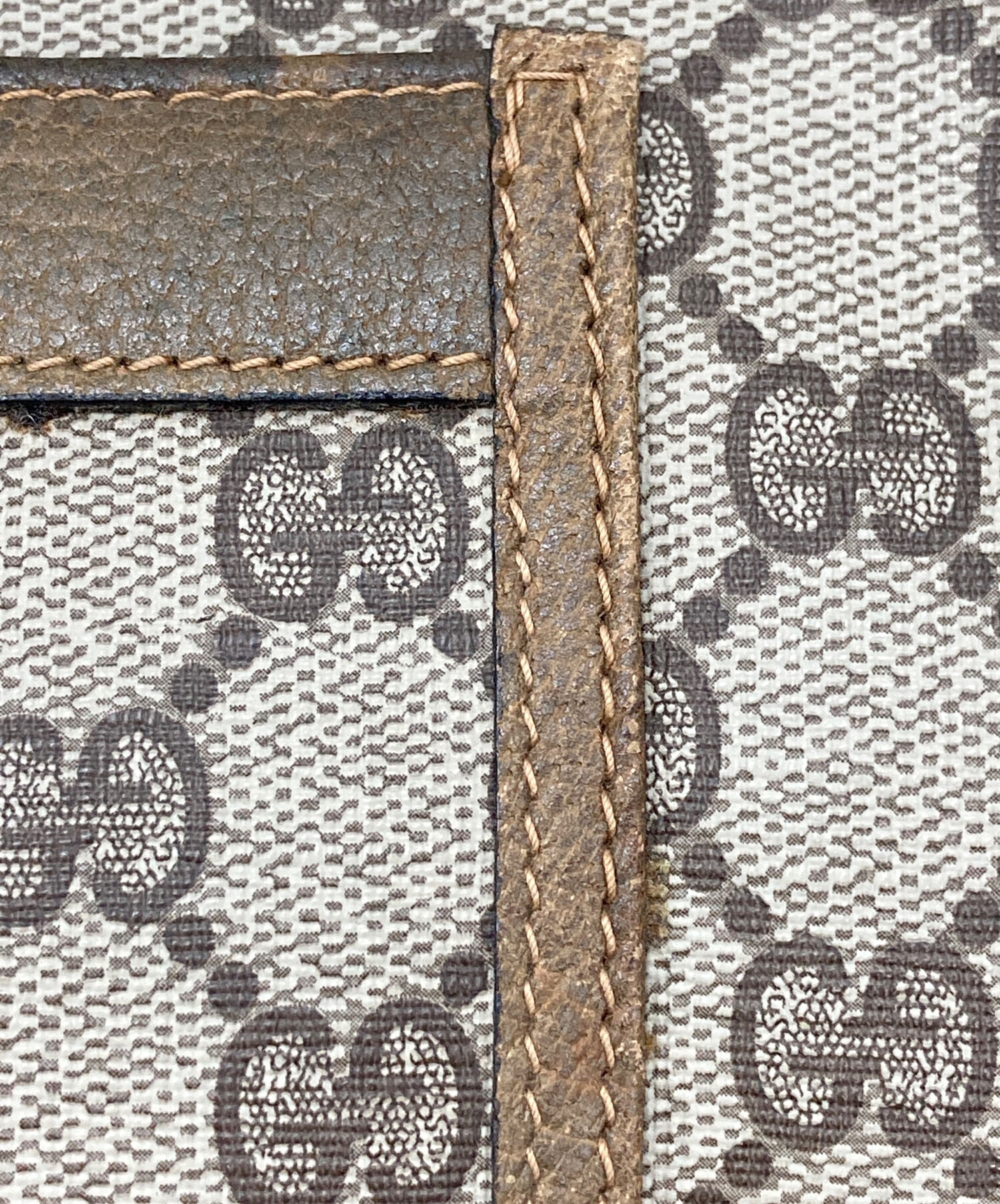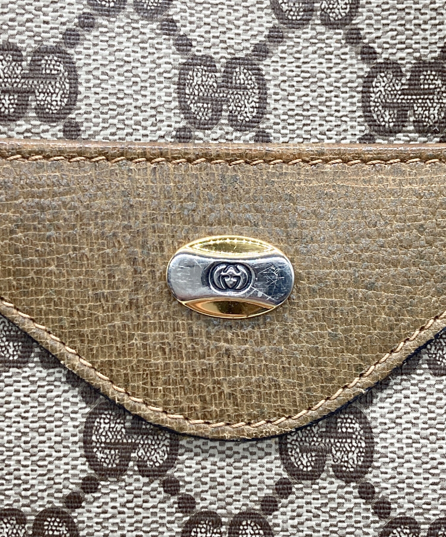 | 状態 | 商品の状態としましては、バッグ底角部分のハガレ、上部の革部分にスレ、表面にキズやヨゴレ、が見受けられます。 また店頭にて展示販売を行っている為、記載に無い細かなキズ、汚れが見受けられる場合がございます。 |