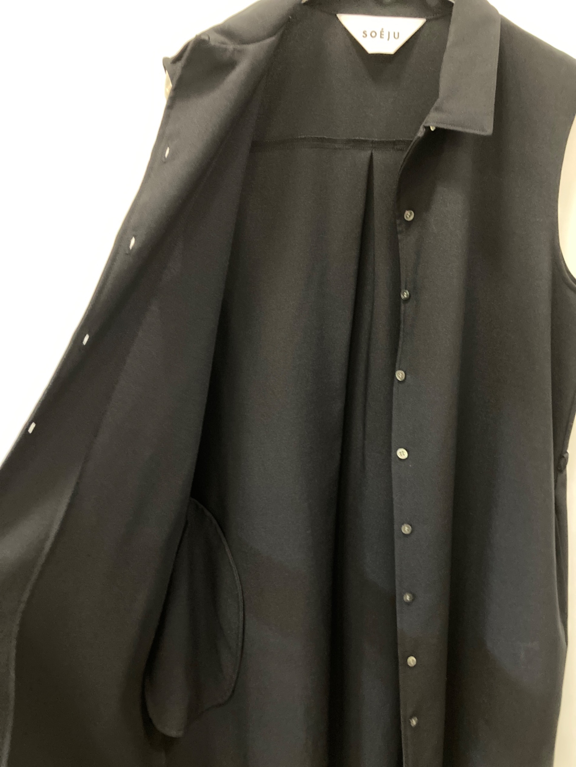 • SOEJU(ソージュ)SOEJU (ソージュ) ソフトオックスノースリーブワンピース ブラック サイズ:Mの古着・服飾アイテム 前身頃/軽度のヨゴレ
