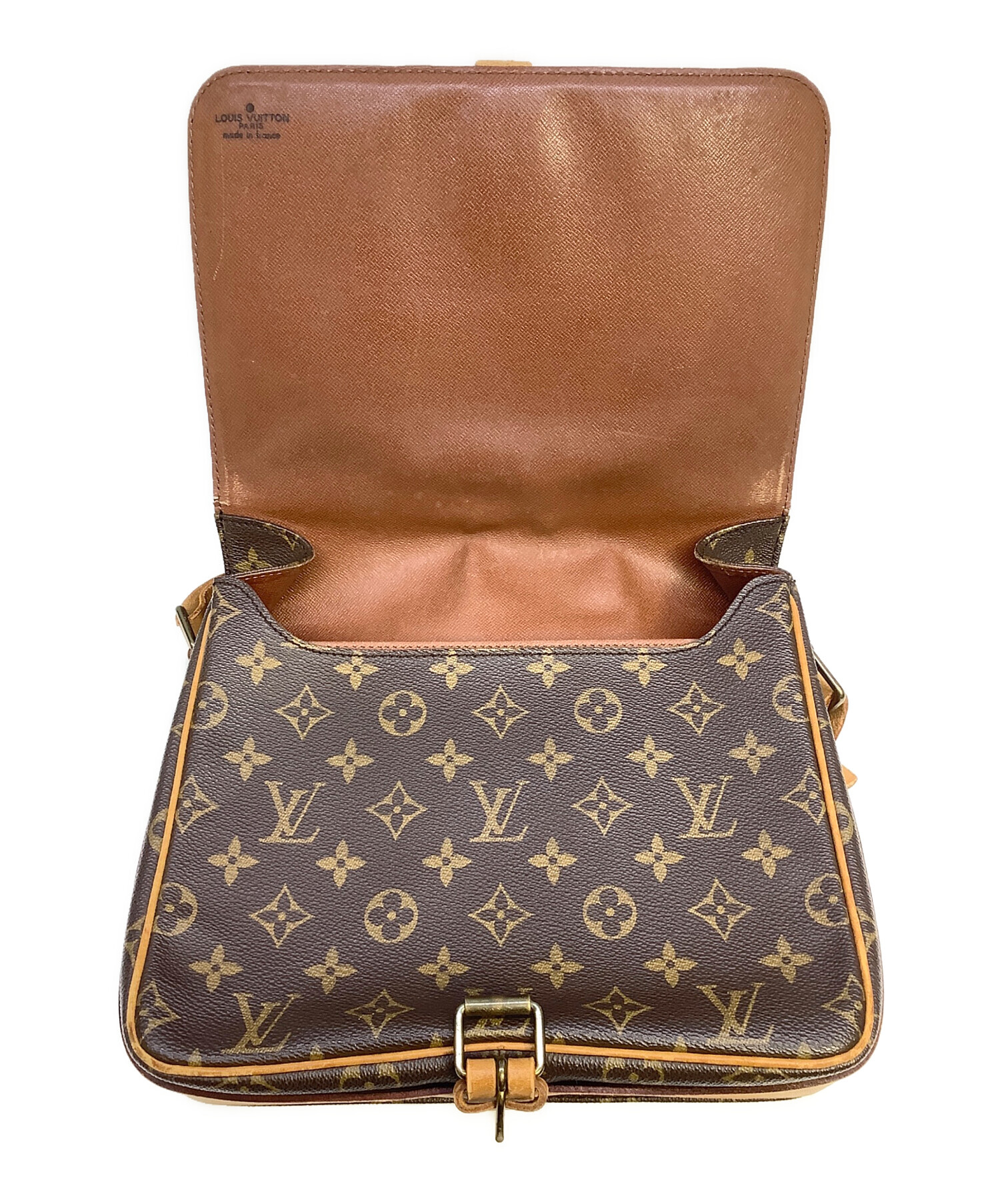 | 状態 | ※革シミ・角スレ・内部ヨゴレ・ストラップ部分若干劣化・裂け有 こちらの商品は中古品の為、使用に伴います細かなキズ、汚れがございます。店頭にて展示販売を行っている為、記載に無い細かなキズ、汚れが見受けられる場合がございます。 |