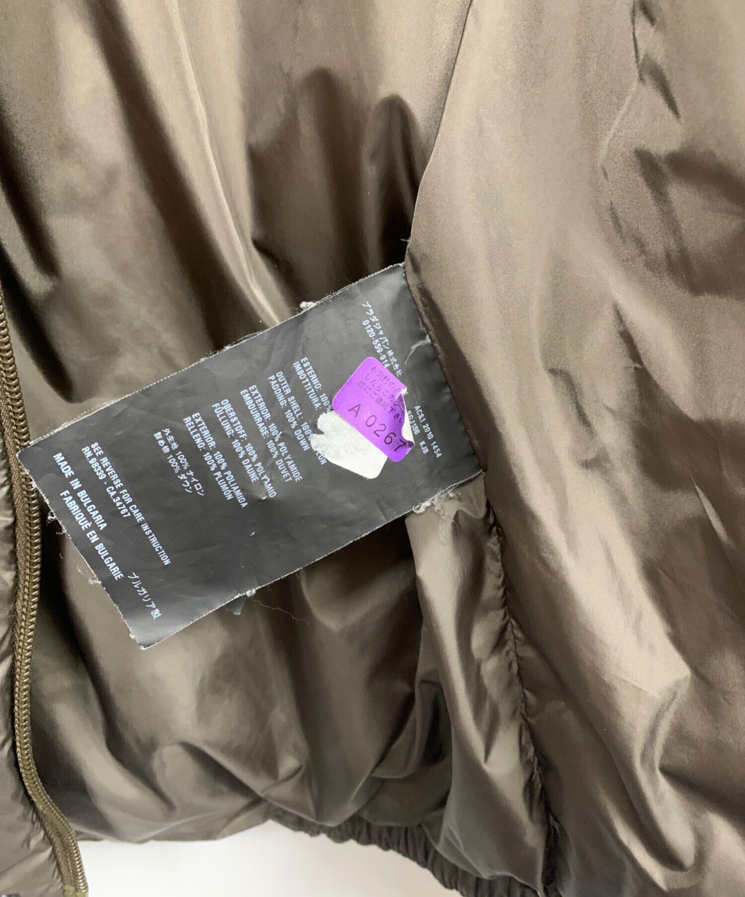 | 素材 | 表地:ナイロン 100% 詰物:ダウン 100% |