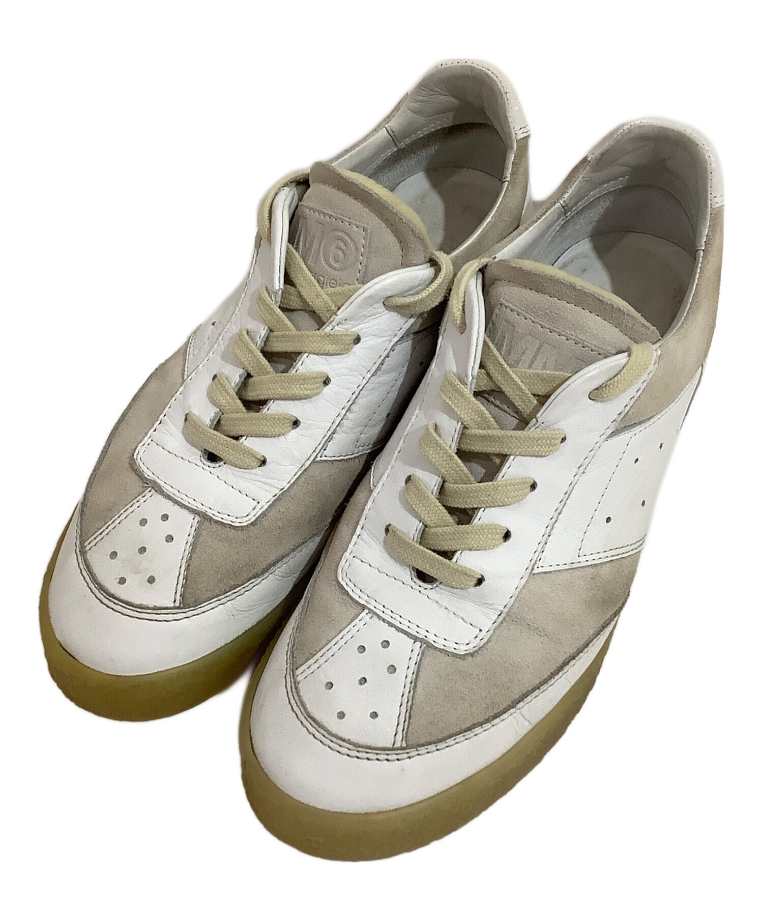 | スタッフコメント | 有名ブランドMaison Margielaのローカットスニーカーでございます。シンプルなカラーリングで汎用性の高いスニーカーとなっております。アクセントとして、ところどころにスウェード調の素材を使っているのも特徴的となっております。 |