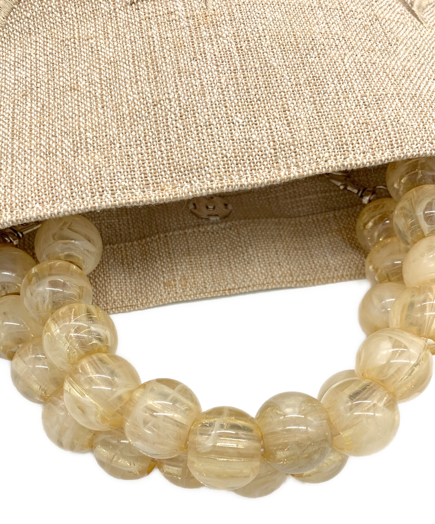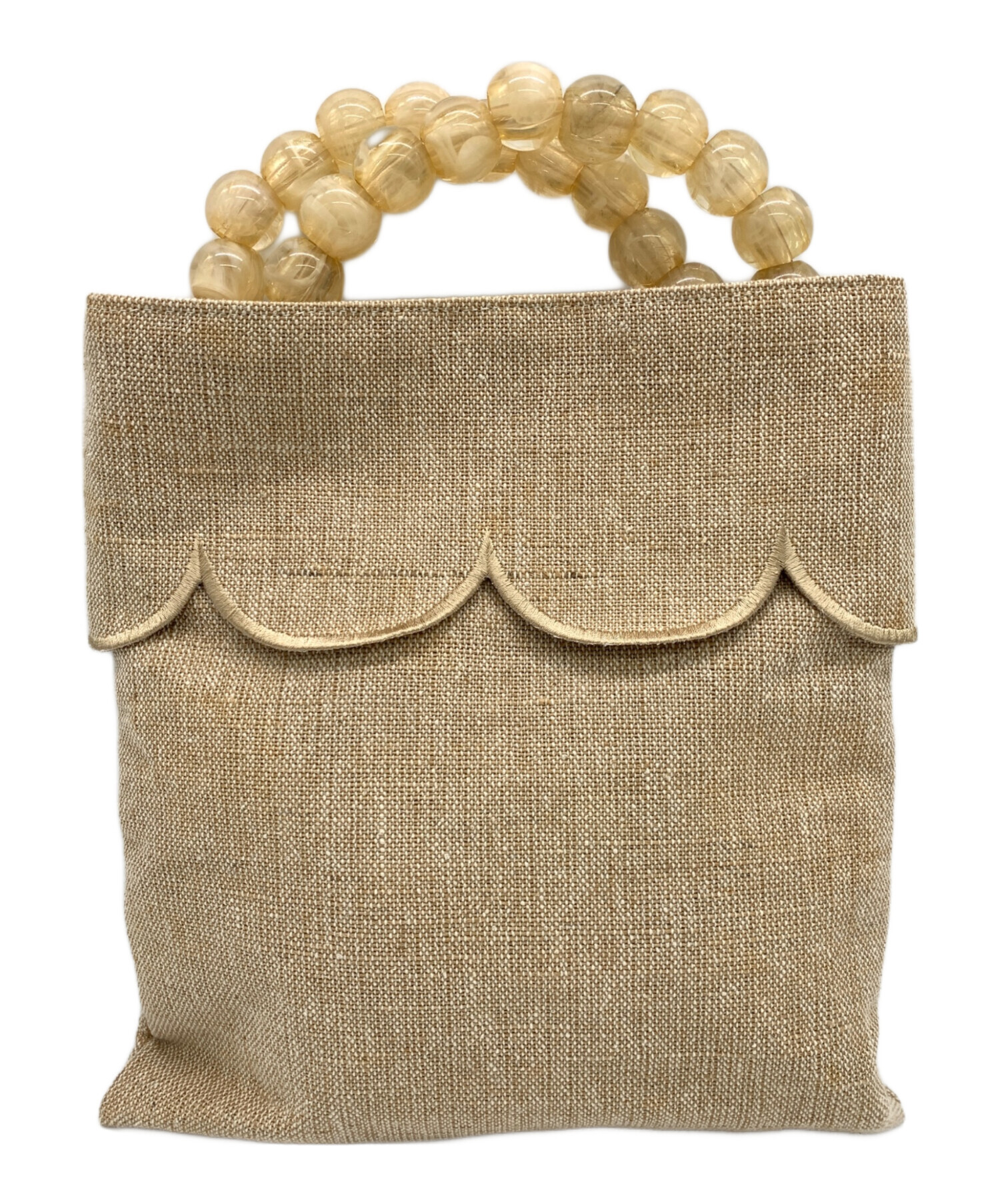 • MARONENONFEE(マーロンエノンフィ)MARONENONFEE (マーロンエノンフィ) パールハンドルスカラップバッグ ベージュの古着・服飾アイテム