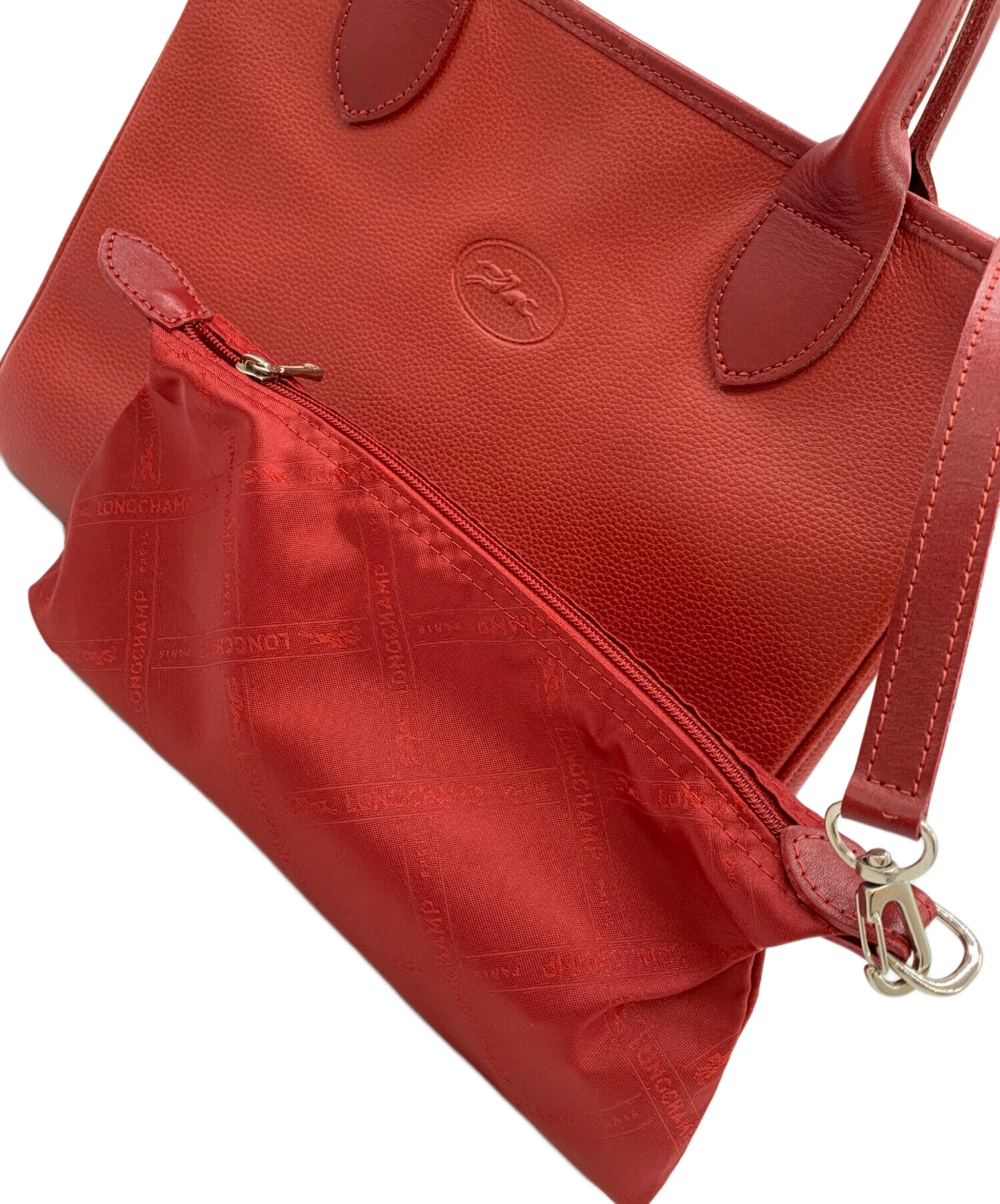 • LONGCHAMP(ロンシャン)LONGCHAMP (ロンシャン) ハンドバッグ レッドの古着・服飾アイテム ポーチ付