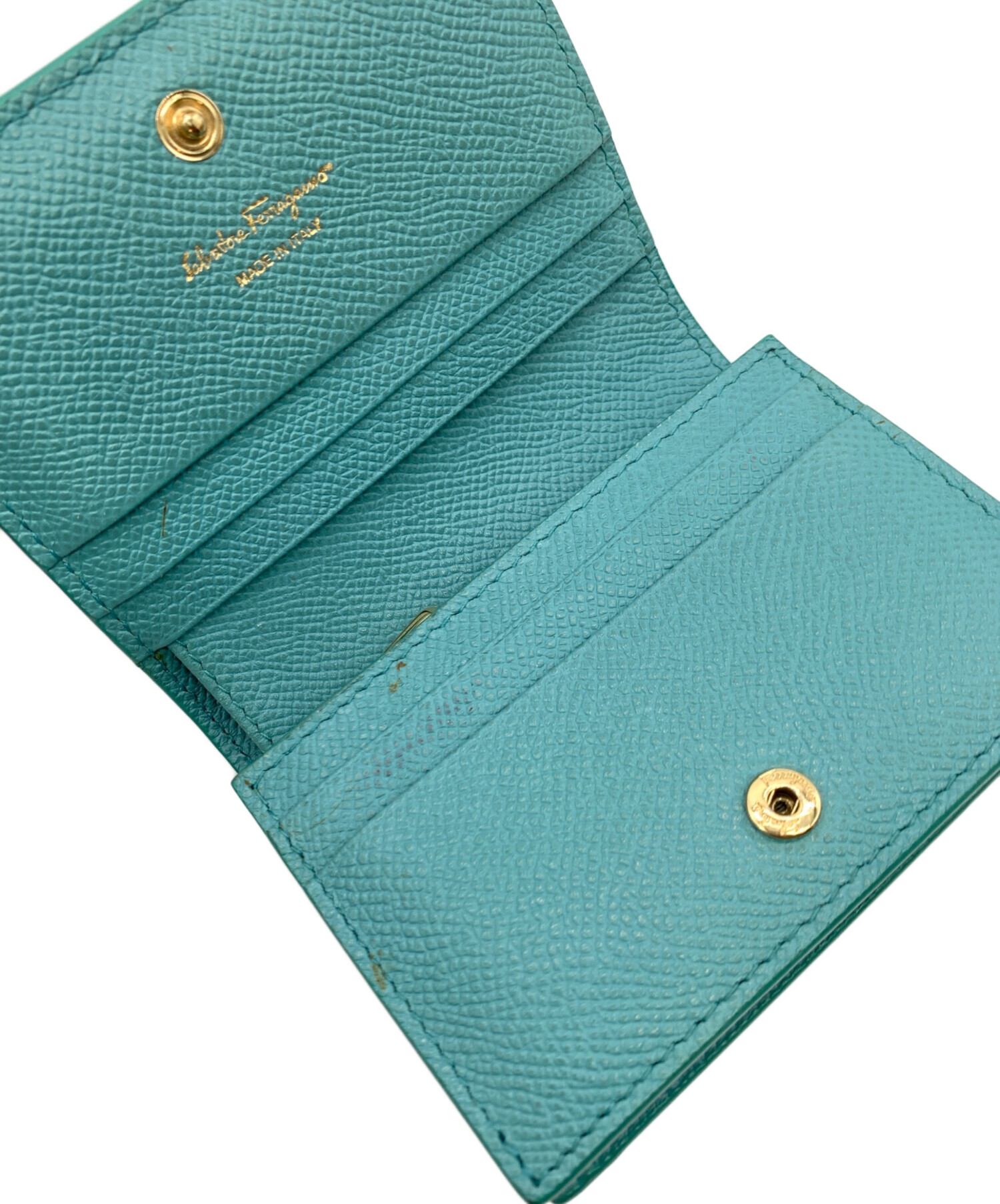 • Salvatore Ferragamo(サルヴァトーレ フェラガモ)Salvatore Ferragamo (サルヴァトーレ フェラガモ) ヴァラリボン 2つ折り財布 エメラルドグリーンの古着・服飾アイテム ヨゴレ・金具スレキズ有