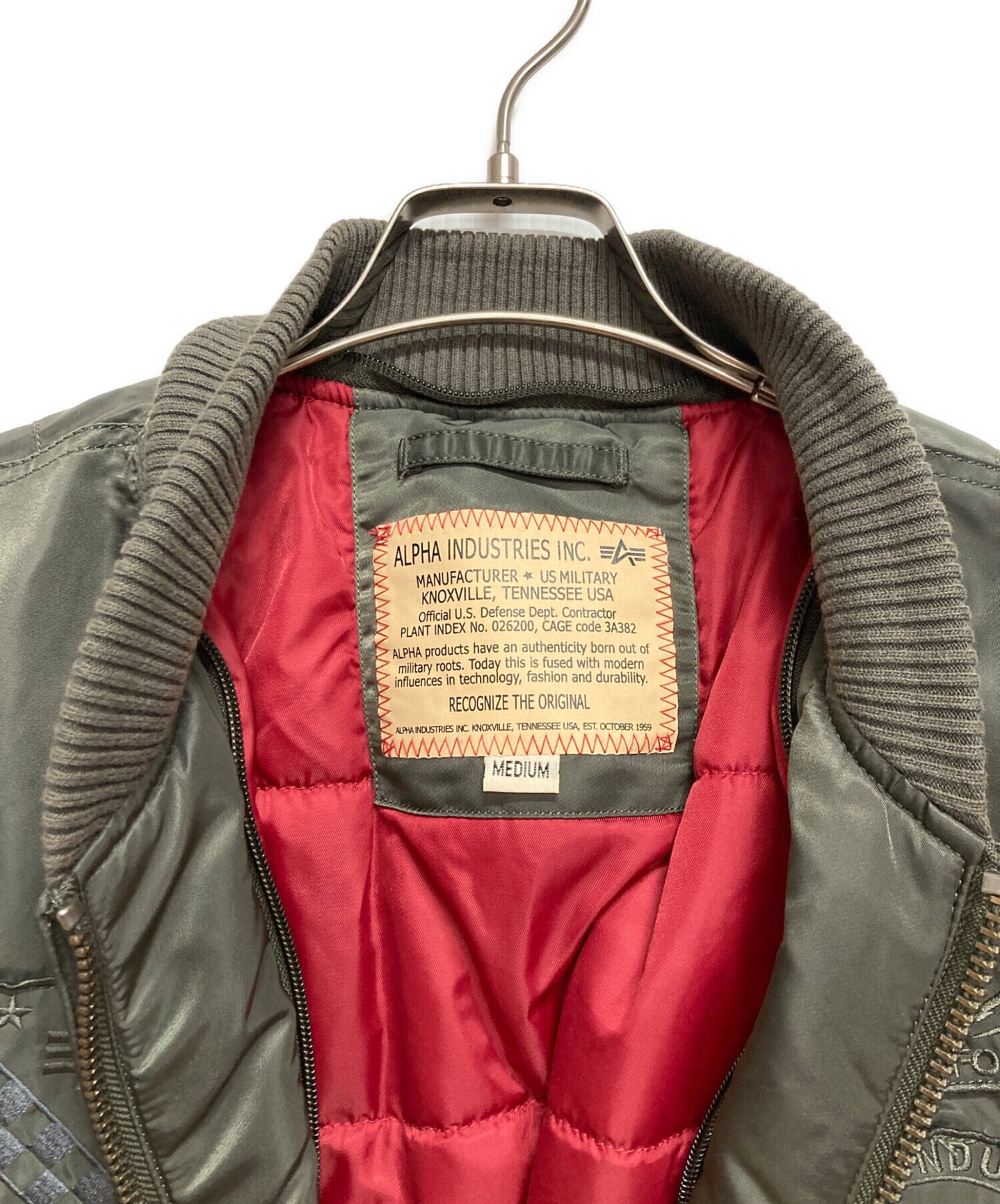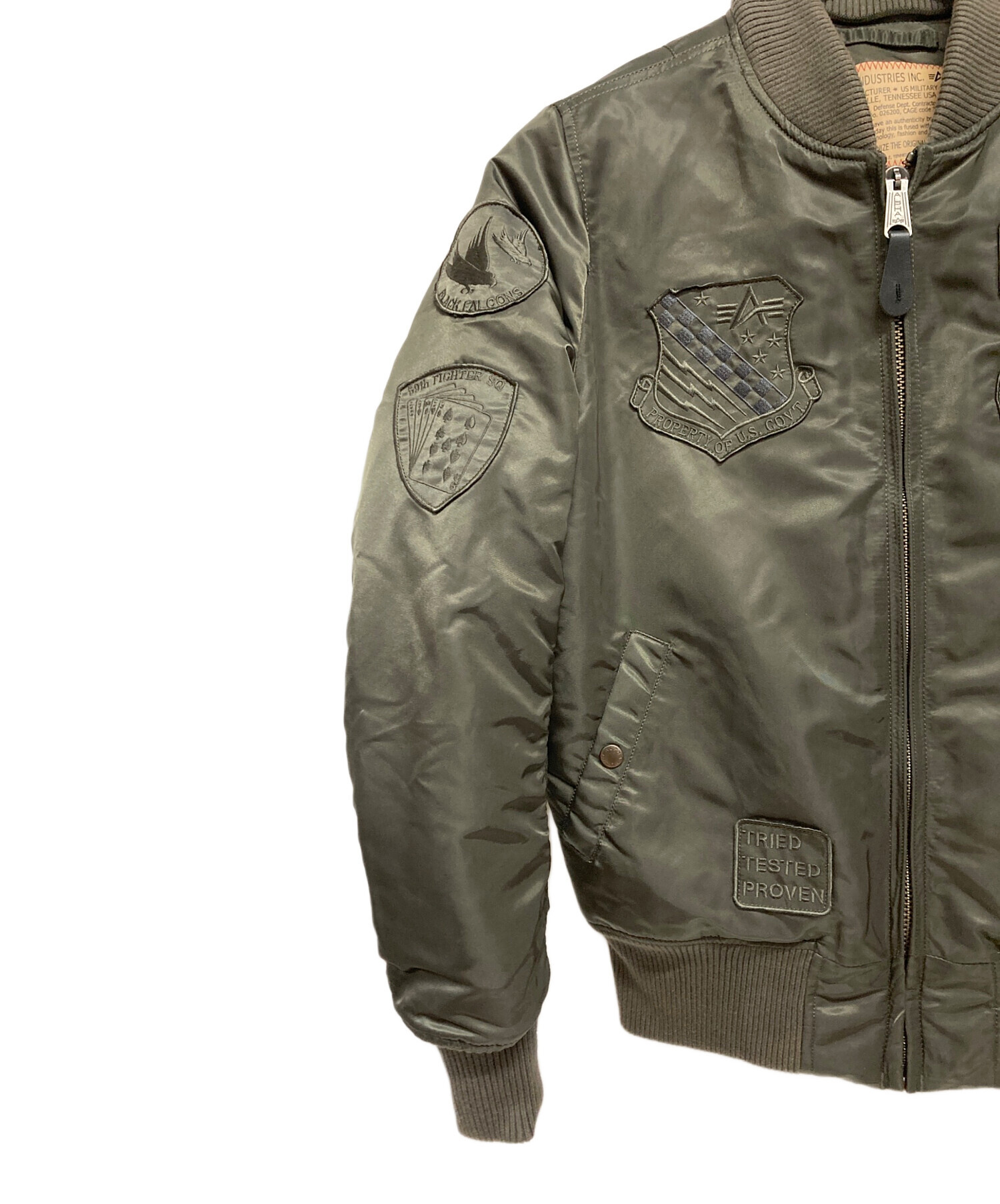 • ALPHA(アルファ)ALPHA (アルファ) MA-1ジャケット グリーン サイズ:MEDIUMの古着・服飾アイテム ワッペン剥がれ有