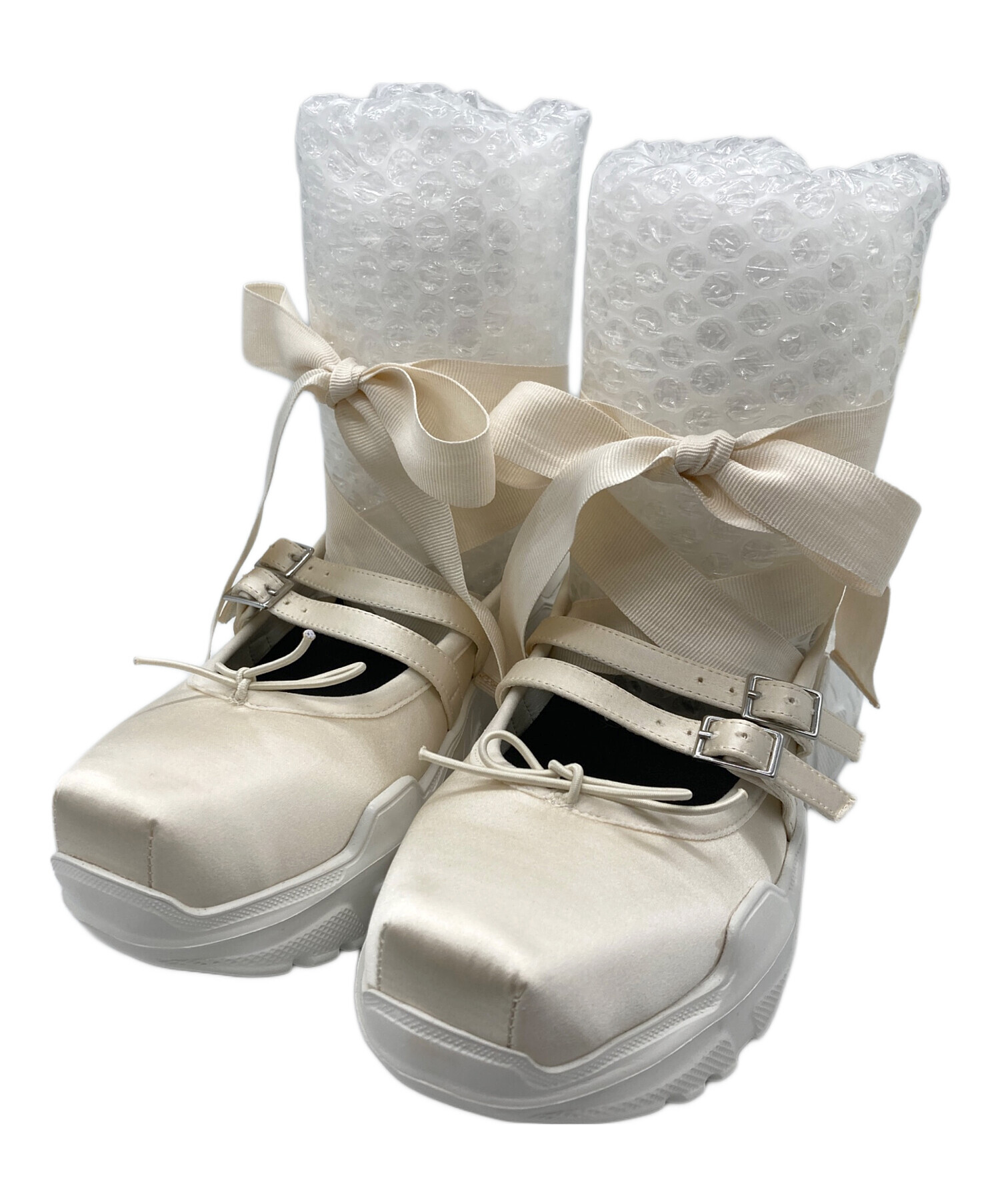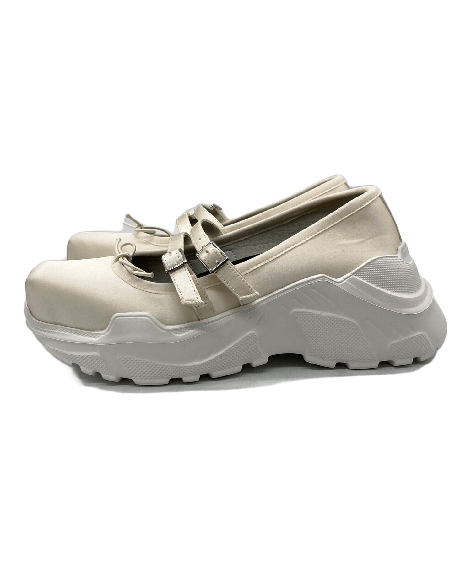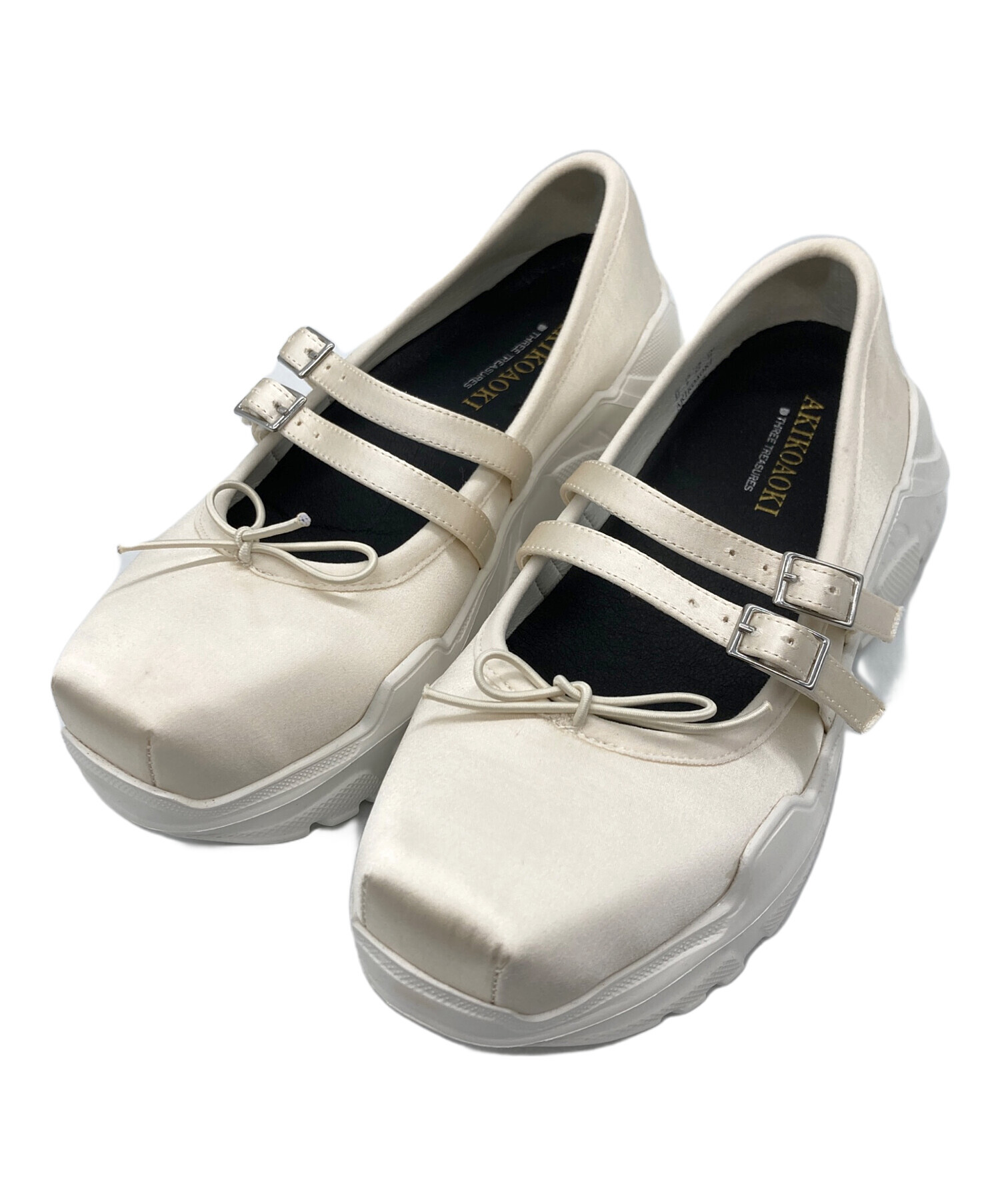 • AKIKOAOKI(アキコアオキ)AKIKOAOKI (アキコアオキ) Giselle/ローファー/メリージェーン ホワイト サイズ:23㎝の古着・服飾アイテム リボン接着剤汚れ有