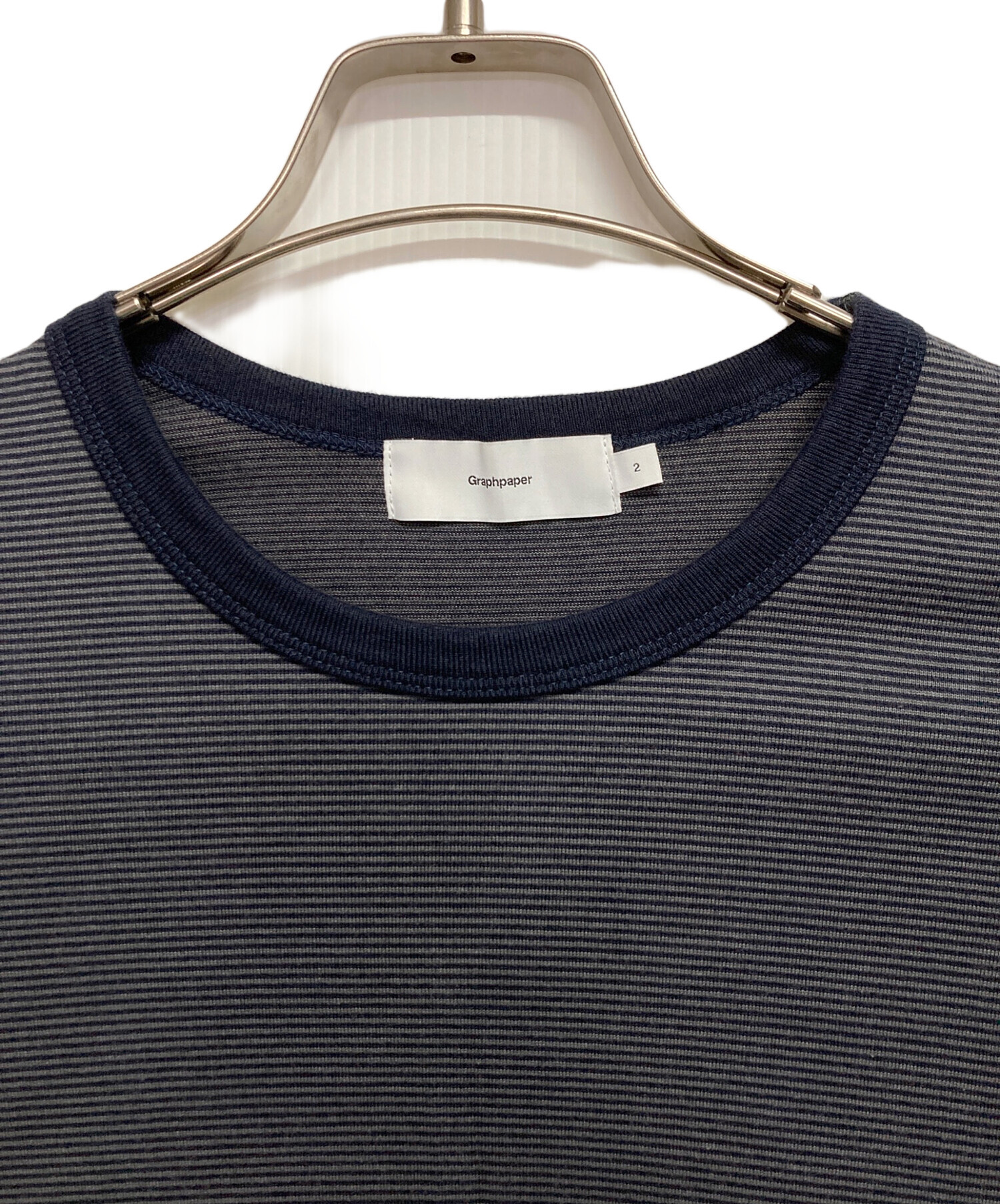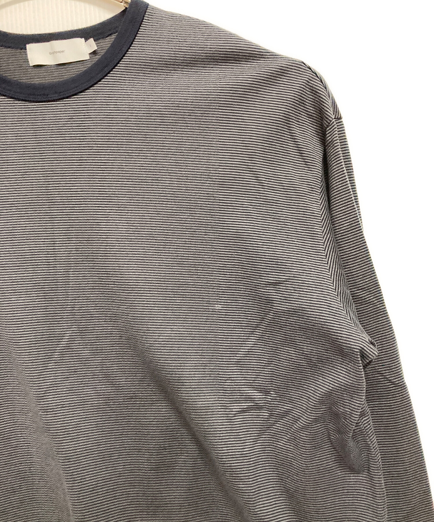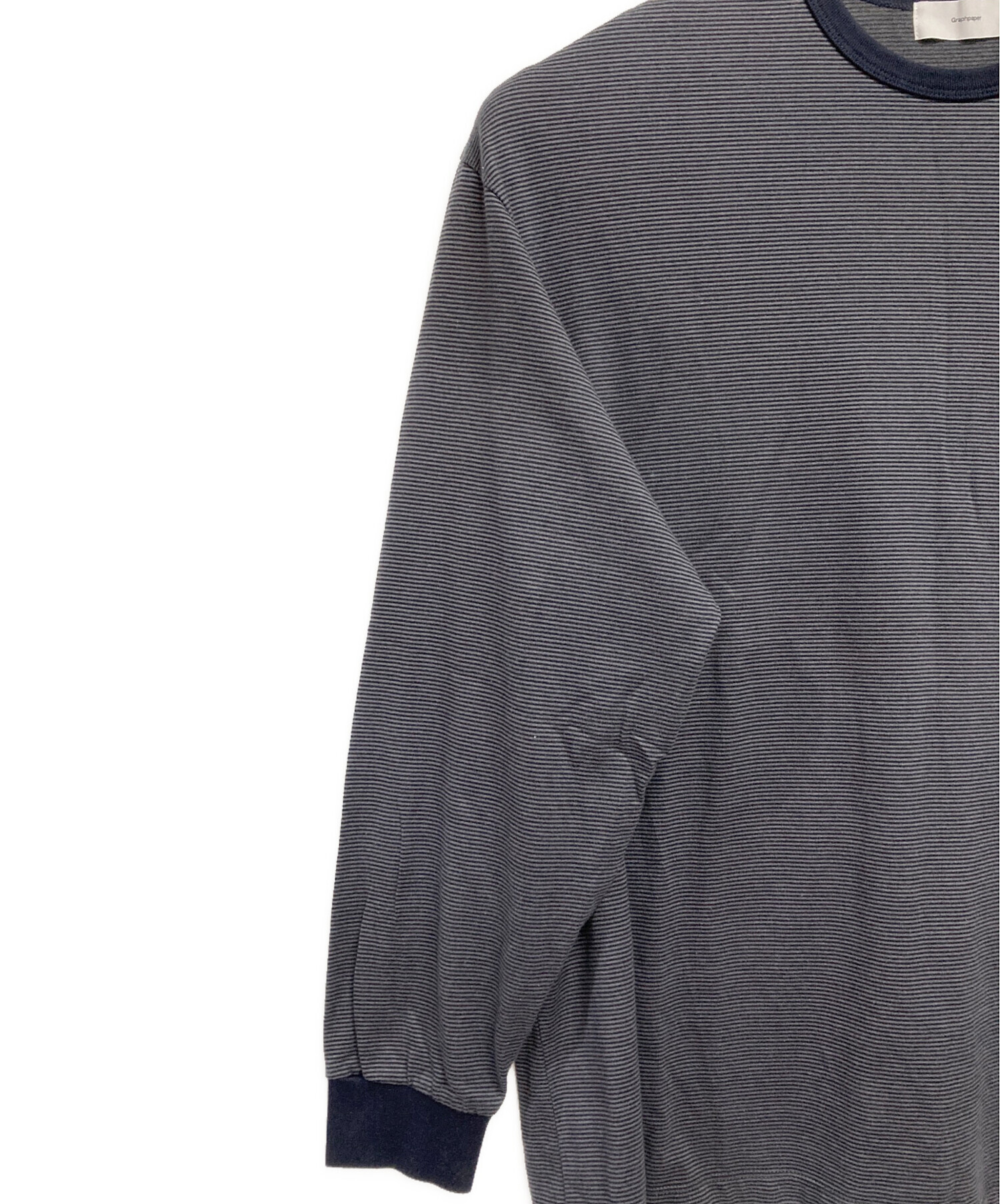 • Graphpaper(グラフペーパー)Graphpaper (グラフペーパー) ボーダー長袖カットソー ネイビー×グレー サイズ:2の古着・服飾アイテム 前見頃部分汚れ有