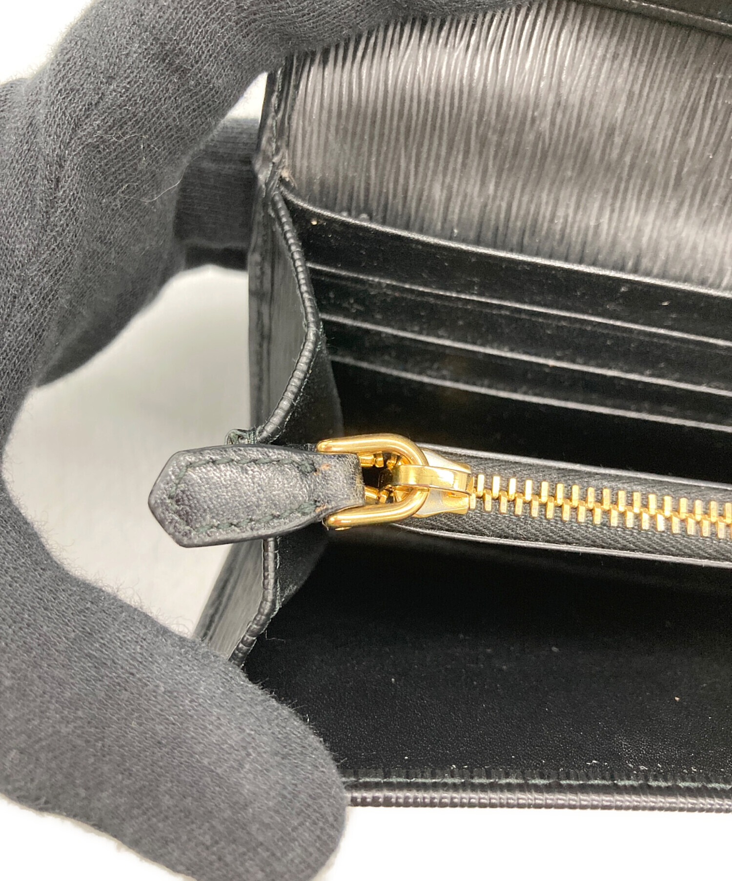 | 状態 | こちらの商品は中古品の為、使用に伴います細かなキズ、汚れがございます。店頭にて展示販売を行っている為、記載に無い細かなキズ、汚れが見受けられる場合がございます。 コバワレ(写真3枚目参照)、角スレ(写真5.6枚目参照)、内部薄汚れ(写真7.8.9枚目参照)、ファスナーレザー&金具スレ(写真10枚目参照)がございます。 |