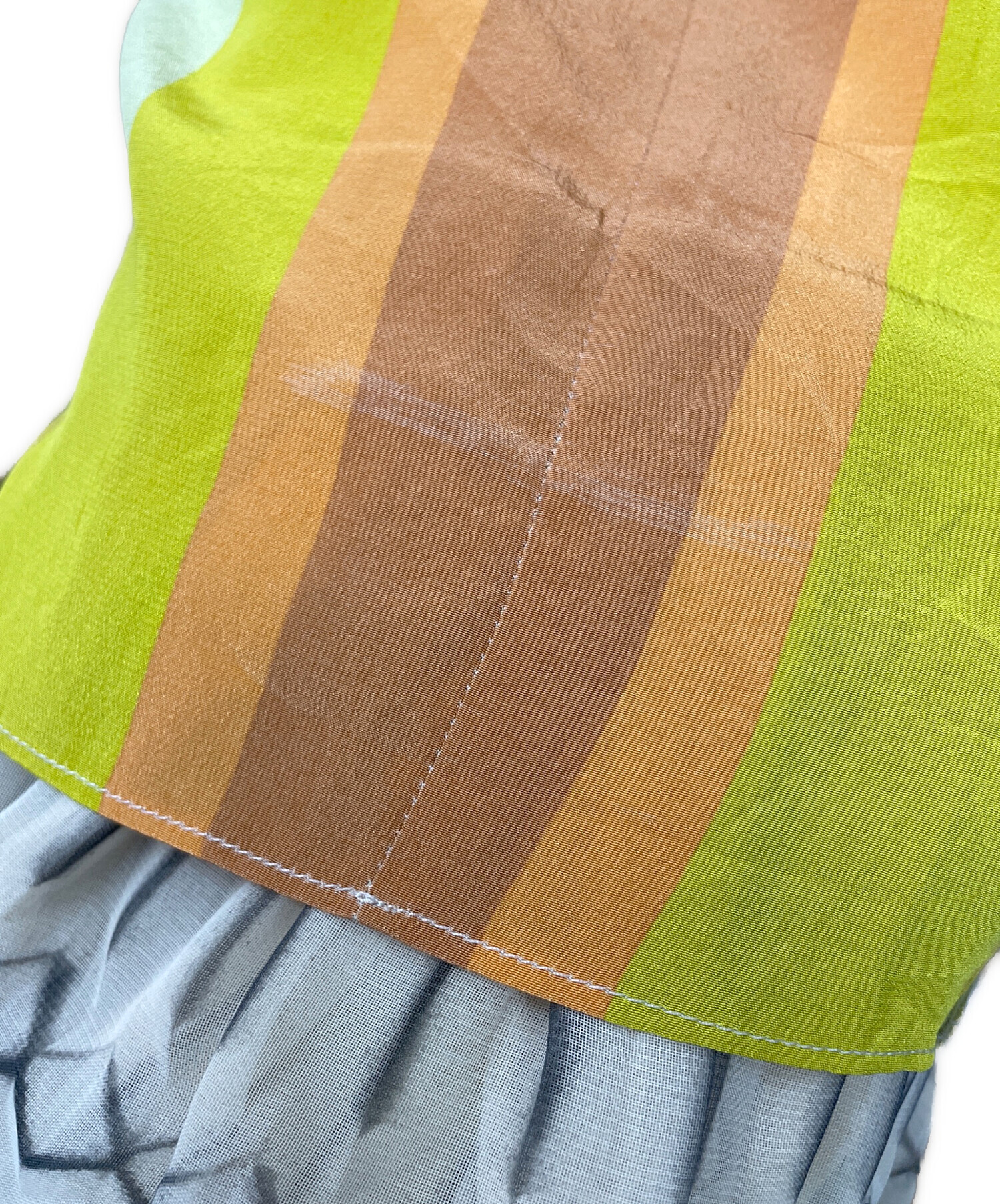 目立つシミや汚れ、におい等がある場合は商品画像や説明文にて極力表記させていただいておりますが、中古品という商品の特性上、全ての瑕疵や不備、洋服直し箇所を撮影・記載をすることは難しくなっております。また、ほとんどのアイテムは店頭と併売しておりますため、出品掲載時からコンディションが変動している場合もございます。あらかじめご了承くださいませ。