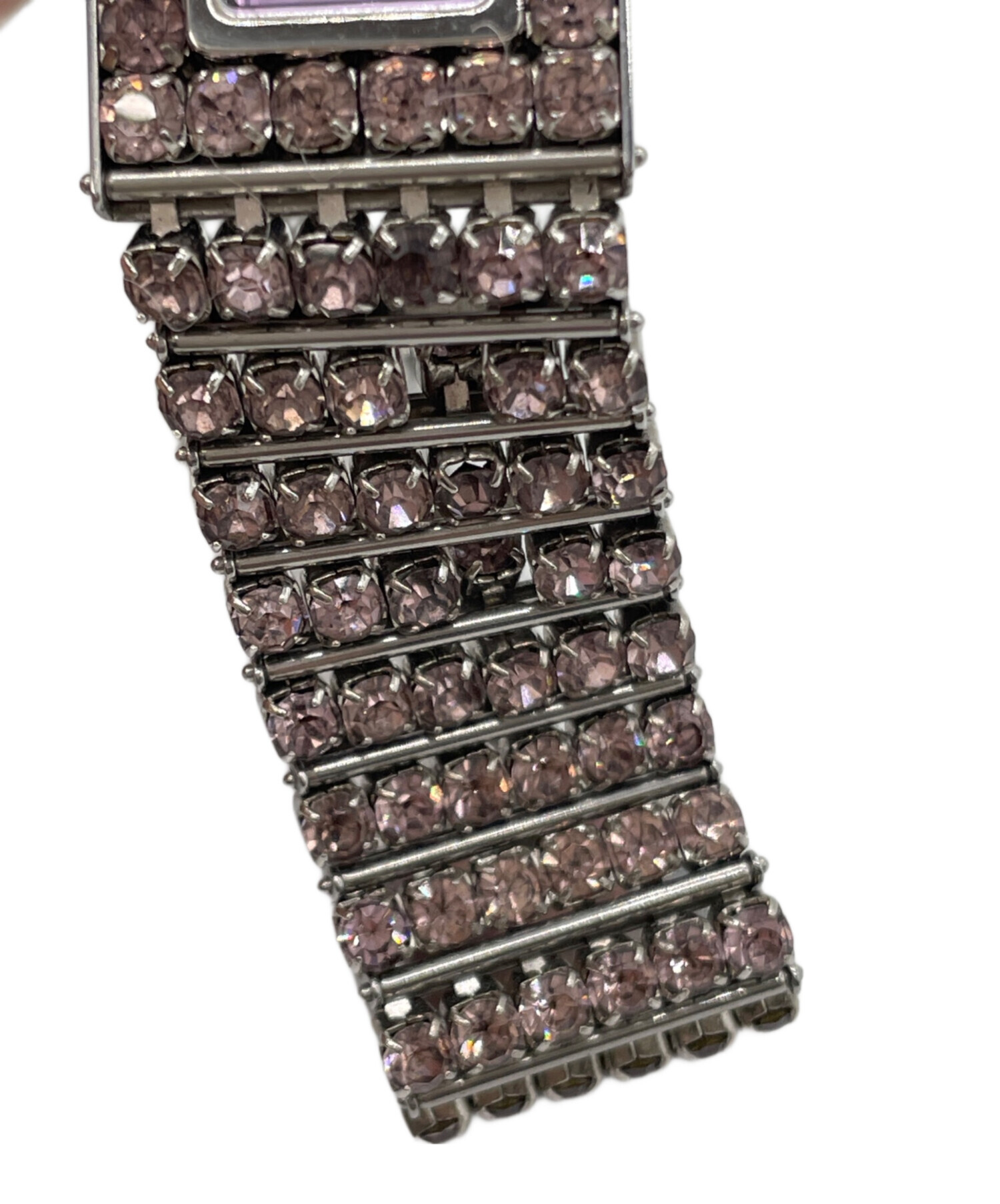 | 状態 | こちらの商品は中古品の為、使用に伴いますキズ、汚れが各所に見受けられます。店頭にて展示販売を行っている為、記載に無い細かなキズ、汚れが見受けられる場合がございます。一部、バンド部分ラインストーンのつなぎ目が破損しております。 |