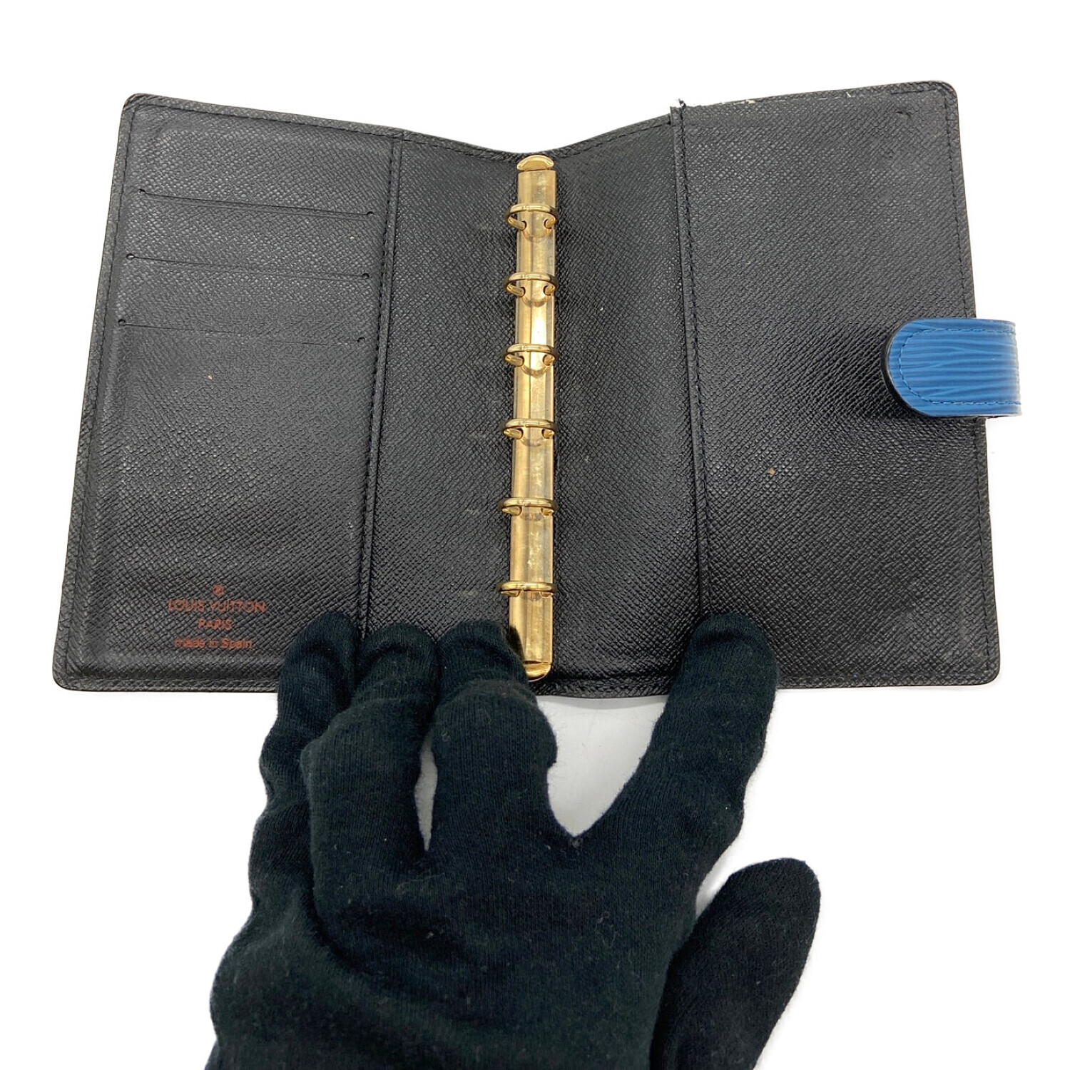 | スタッフコメント | 表はブルーで内側はブラックのコントラストが上品な手帳カバーです |
