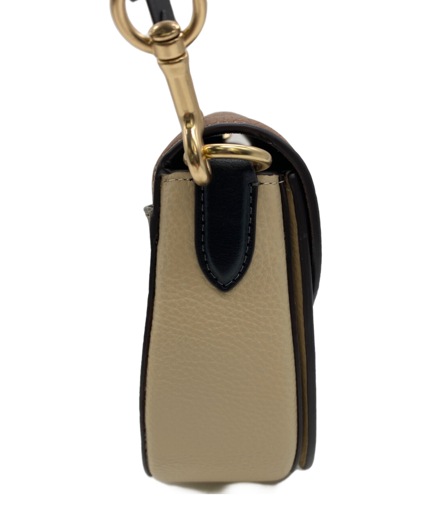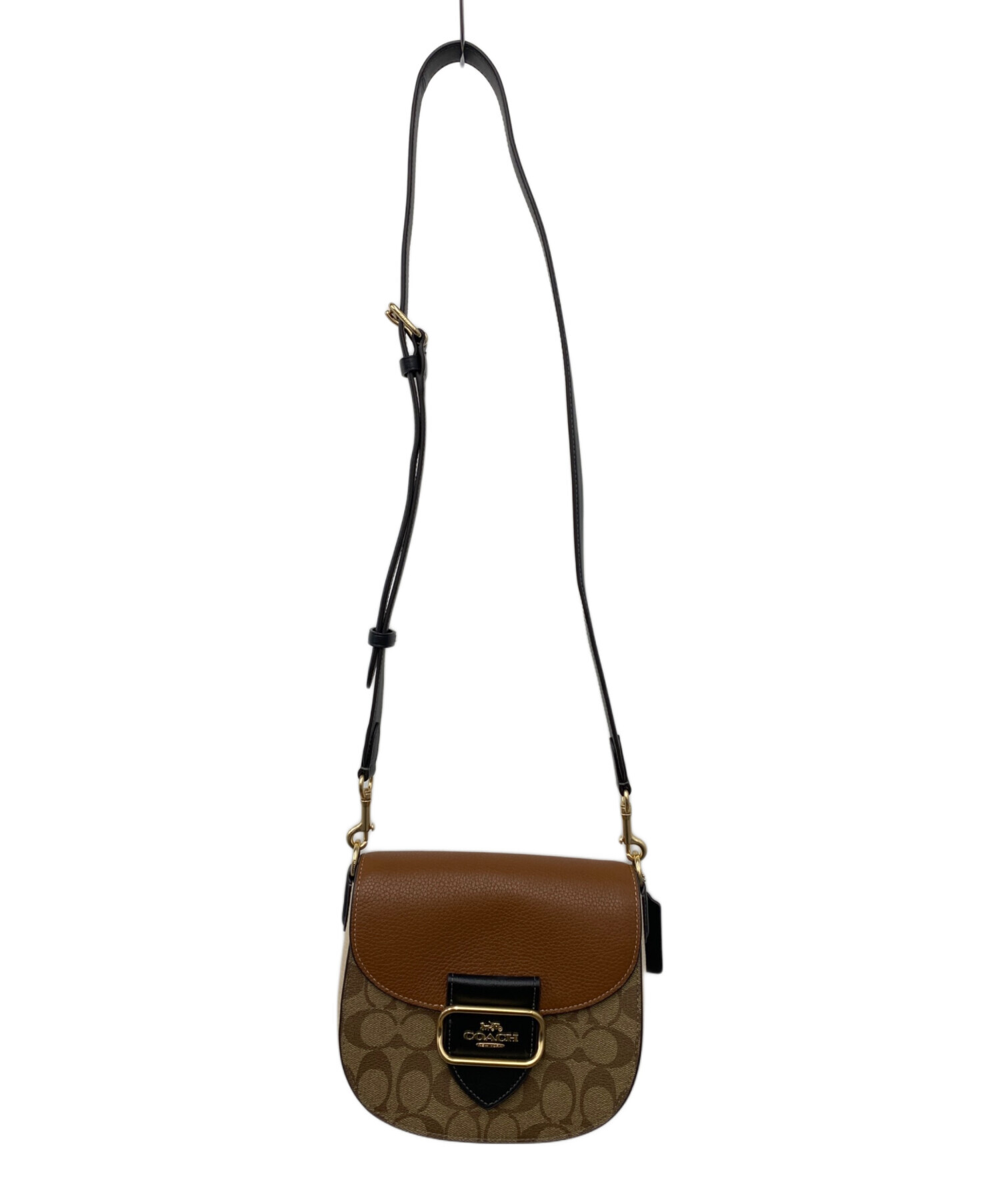 | スタッフコメント | ブラウン×ベージュの生地にゴールドの金具が目を惹くおしゃれなショルダーバッグです。 |
