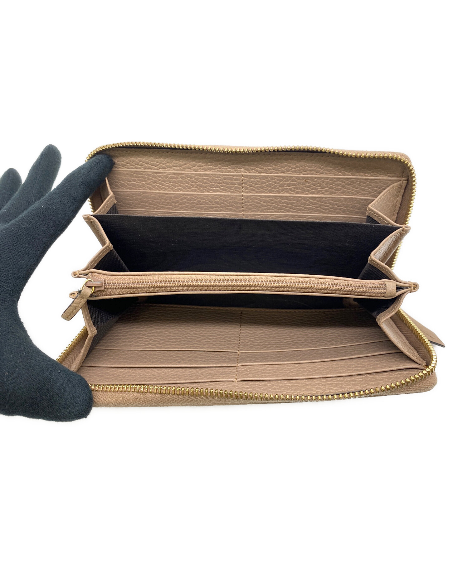 | スタッフコメント | ベージュのレザーに、ゴールドの金具が高級感のある財布になります。 |