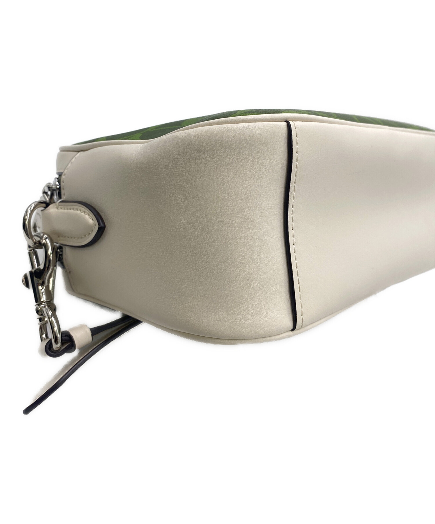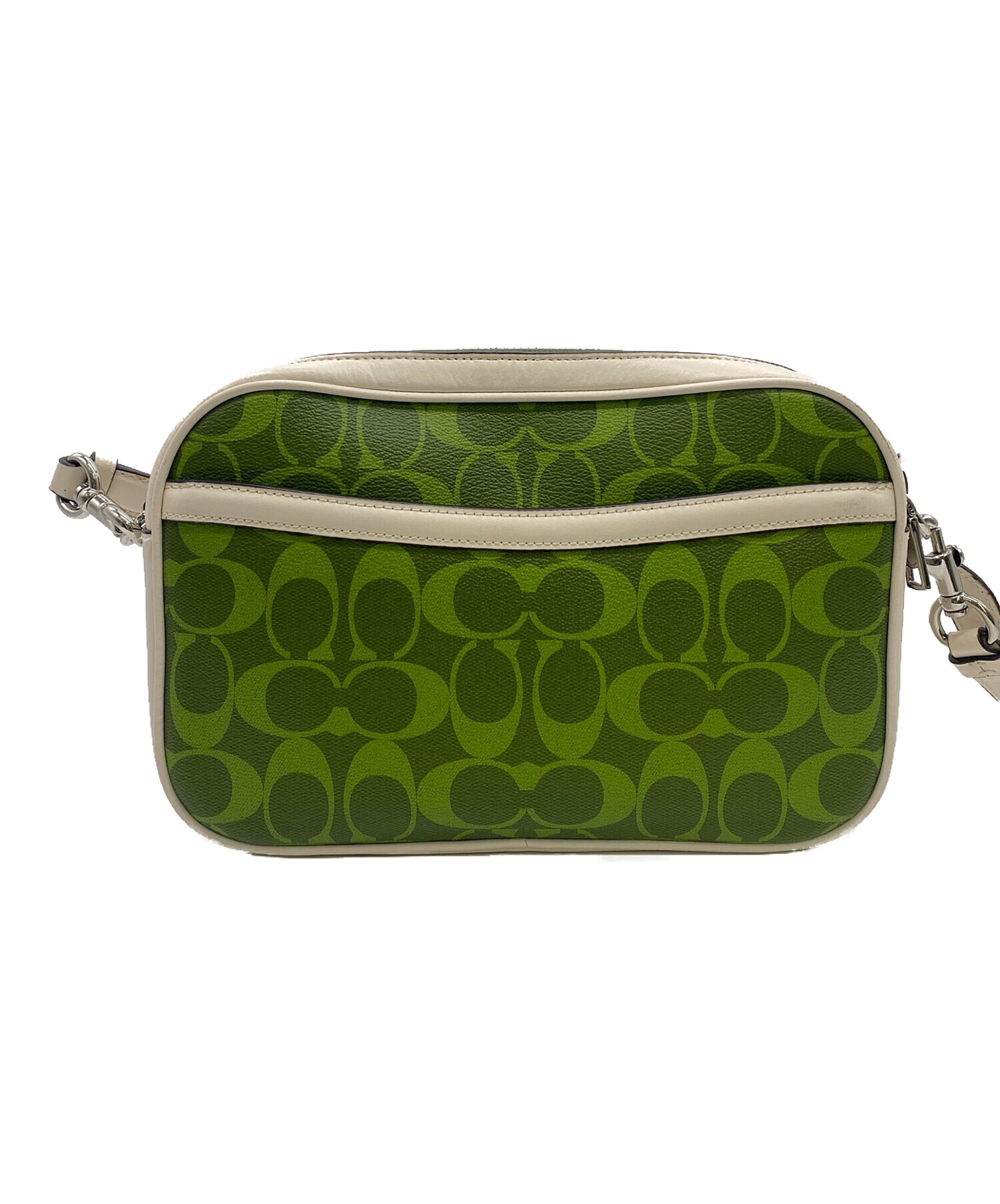 | スタッフコメント | COACHの象徴「C」のモノグラムロゴが全面にあしらわれたシグネチャー柄に、爽やかなグリーンカラーが映える上品なショルダーバッグです。外にも内にもポケットがあり、普段使いにもお出掛けにもぴったりなサイズ感です。 |