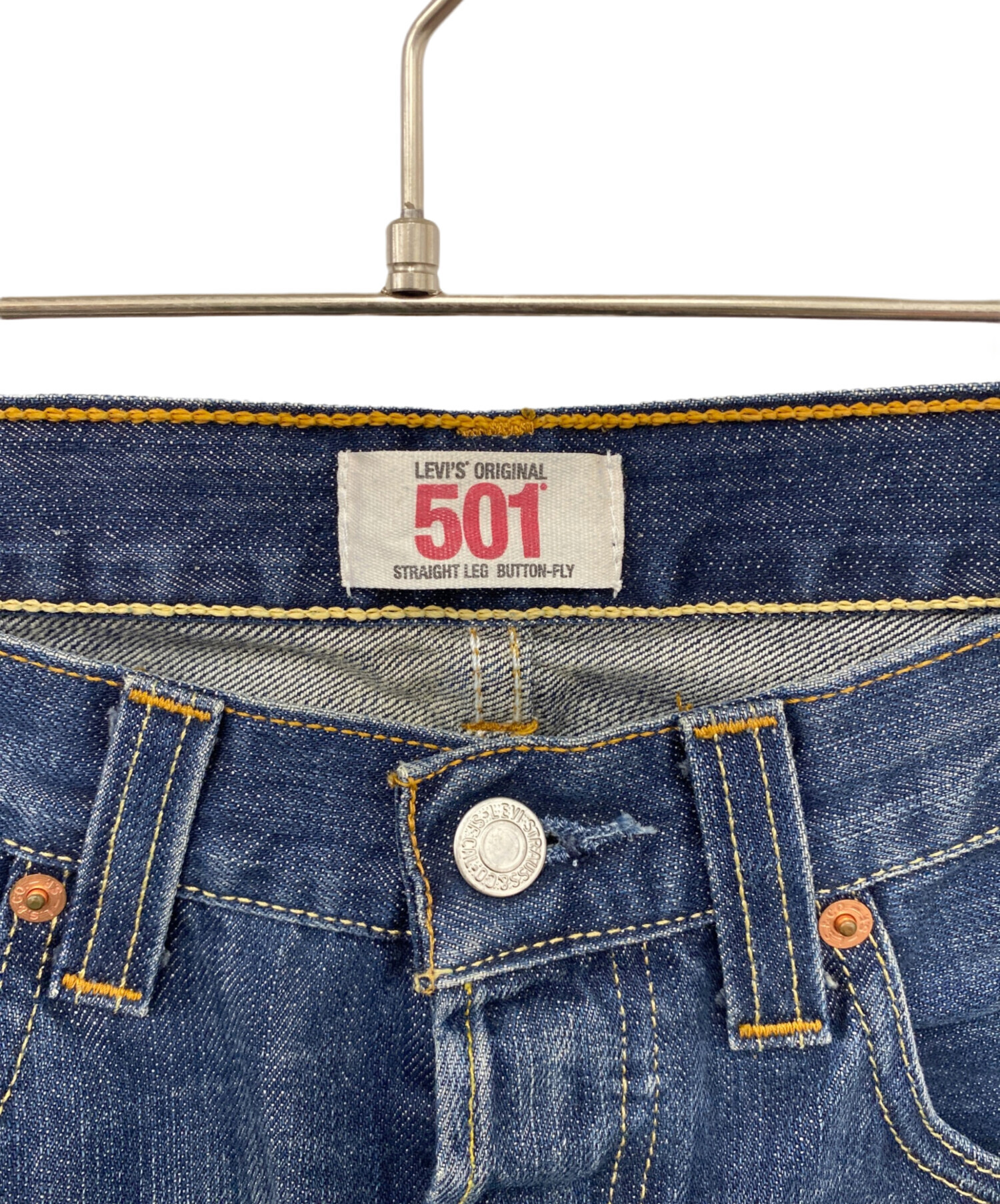 | スタッフコメント | LEVIS定番モデルの501となっています。弱テーパードのストレートシルエットがアメカジコーデ以外でも着用可能な1着となっています。 |