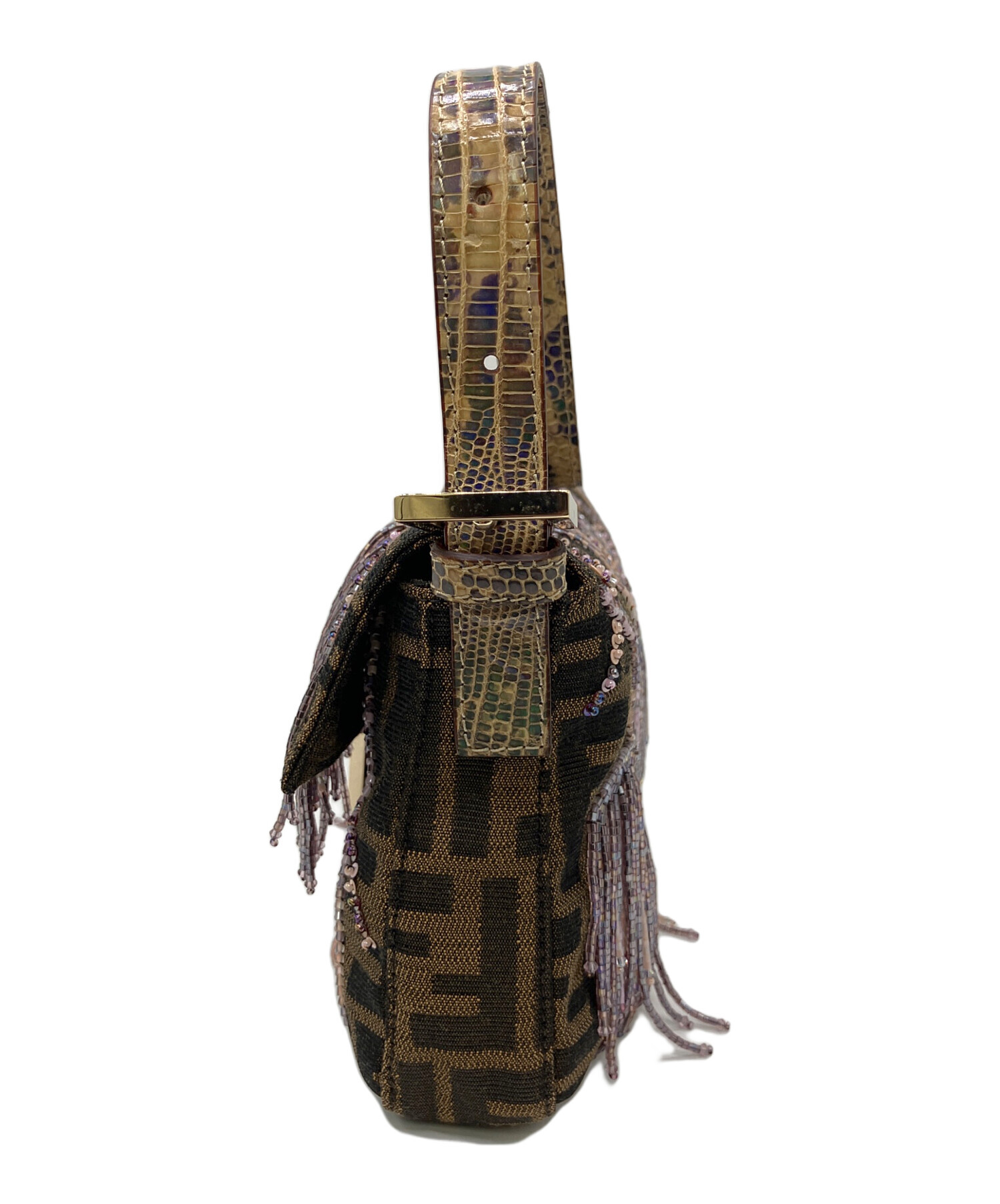 | スタッフコメント | レインボーのパイソン柄と、ビーズのデザインが個性的なショルダーバッグになります。 |