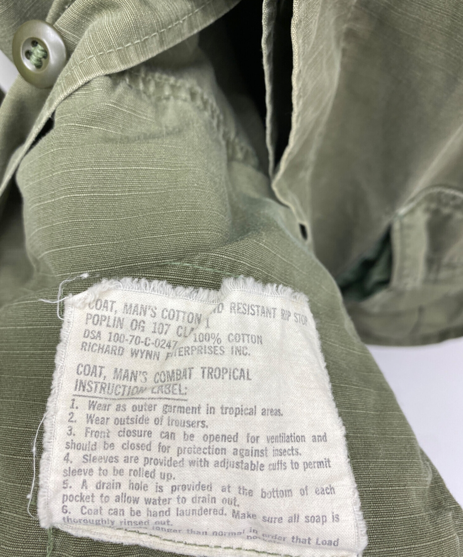 • RICHARD WYNN ENTERPRISES INC.(リチャードウィンエンタープライズ)RICHARD WYNN ENTERPRISES INC. (リチャードウィンエンタープライズ) ジャングルファティーグジャケット グリーン サイズ:MEDIUM-SHORTの古着・服飾アイテム タグはがれ