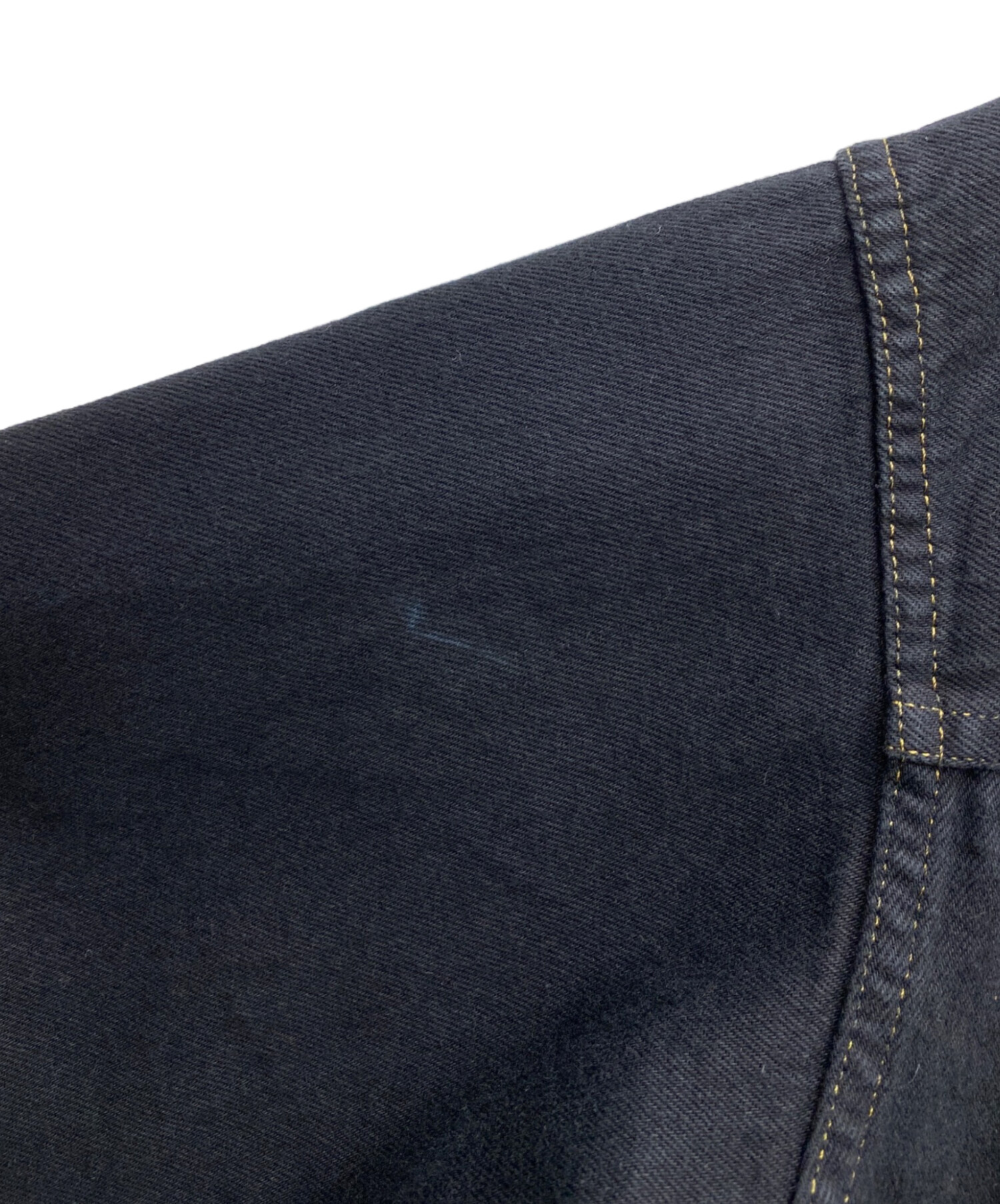 | スタッフコメント | 1stタイプのデニムジャケットを黒で後染めしたモデルです。すでに柔らかさの出た生地感から育てていくことができるアイテムです。 |