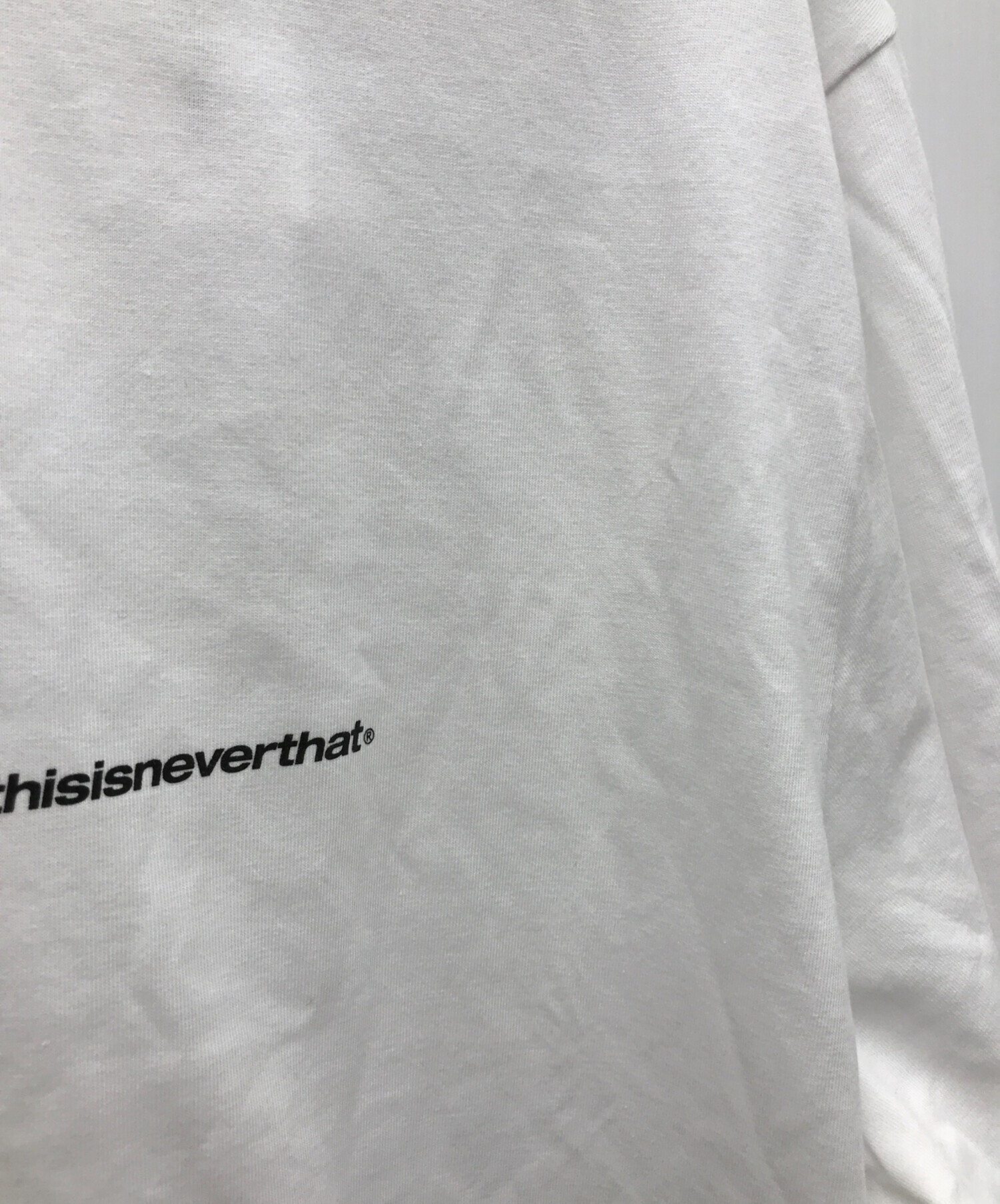 • thisisneverthat(ディスイズネバーザット)thisisneverthat (ディスイズネバーザット) 半袖カットソー ホワイト サイズ:XL 未使用品の古着・服飾アイテム 文字上にヨゴレ有