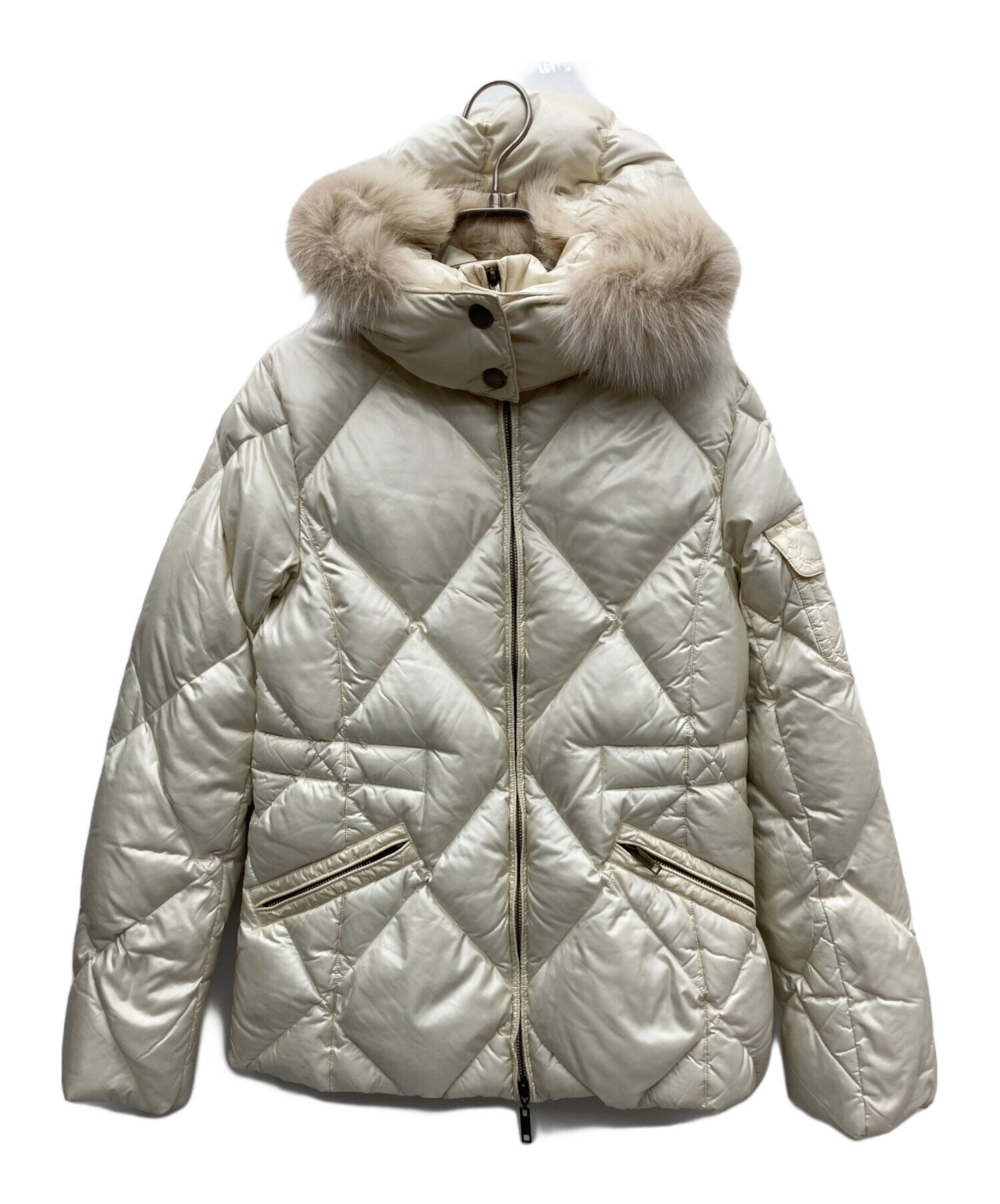 | 素材 | 表地 ナイロン100%(イタリア製生地使用)(毛皮部分フォックス) 中綿 ダウン90%、フェザー10% 裏地 身頃キュプラ、ポリエステル 袖部分ポリエステル |