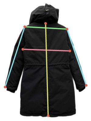 | 素材 | 表地 ポリエステル 85% 綿 15% 裏地 ナイロン 100% 詰物1 ホワイトダックダウン 80% フェザー 20% 詰物2 ポリエステル 100% 毛皮 コヨーテ |