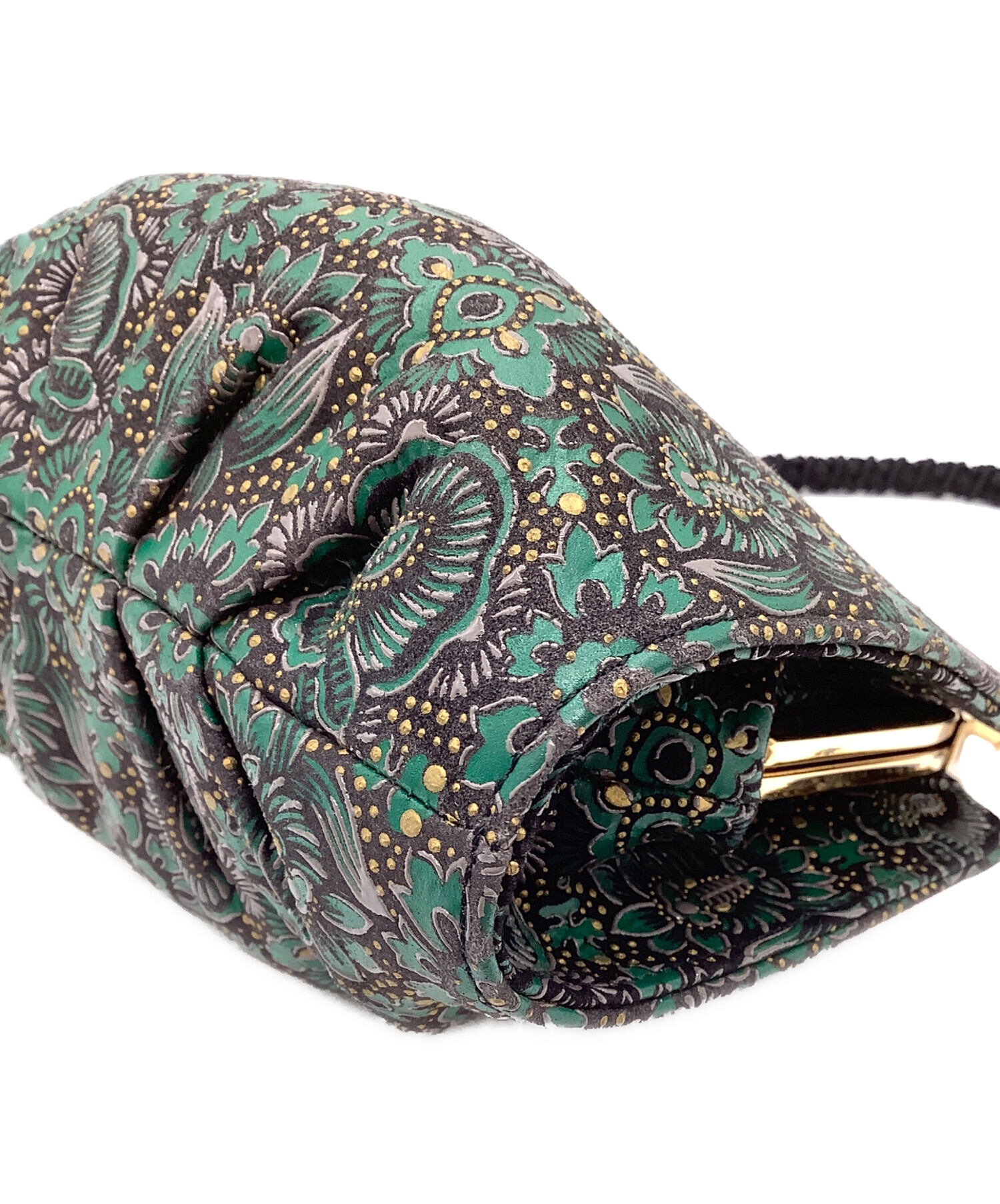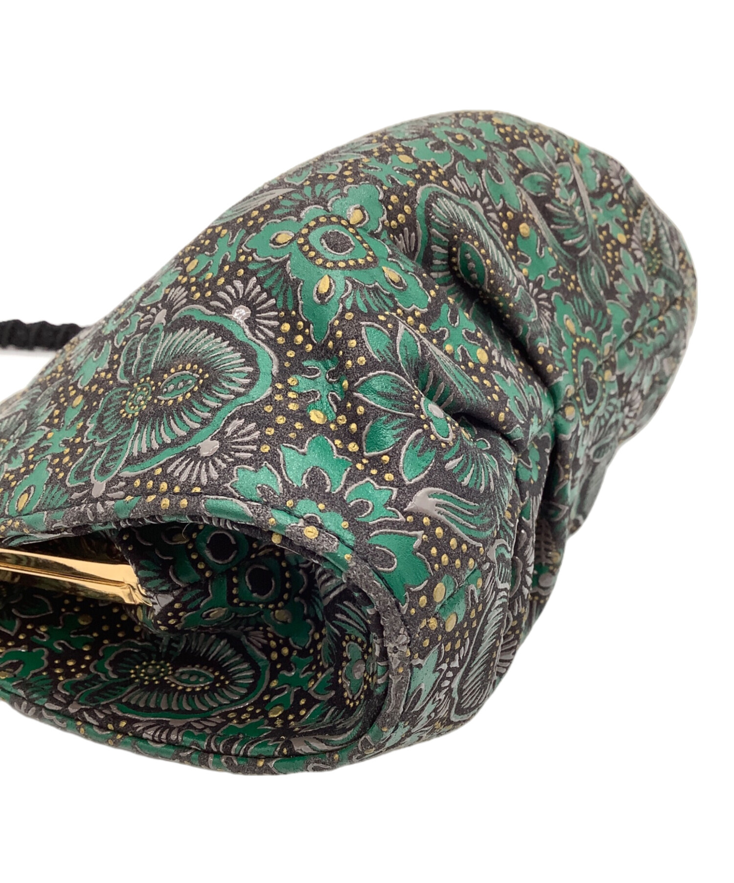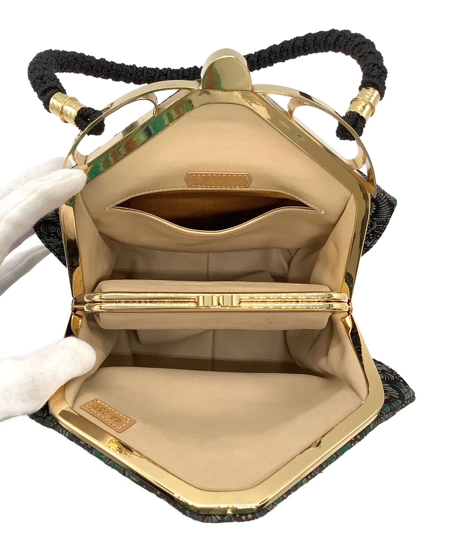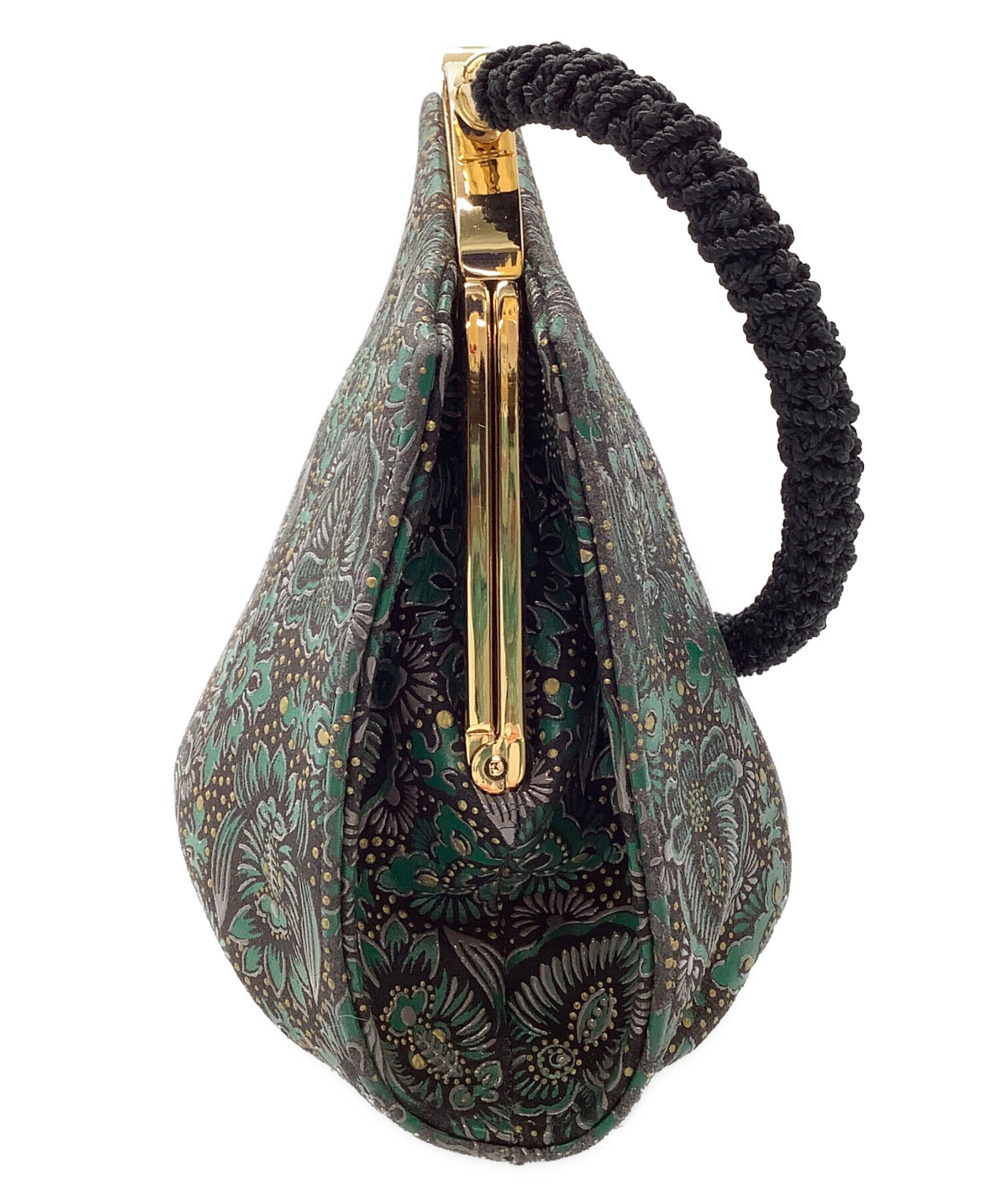 • 印傳屋(インデンヤ)印傳屋 (インデンヤ) ハンドバッグ ブラック×グリーンの古着・服飾アイテム 内部ヨゴレ有