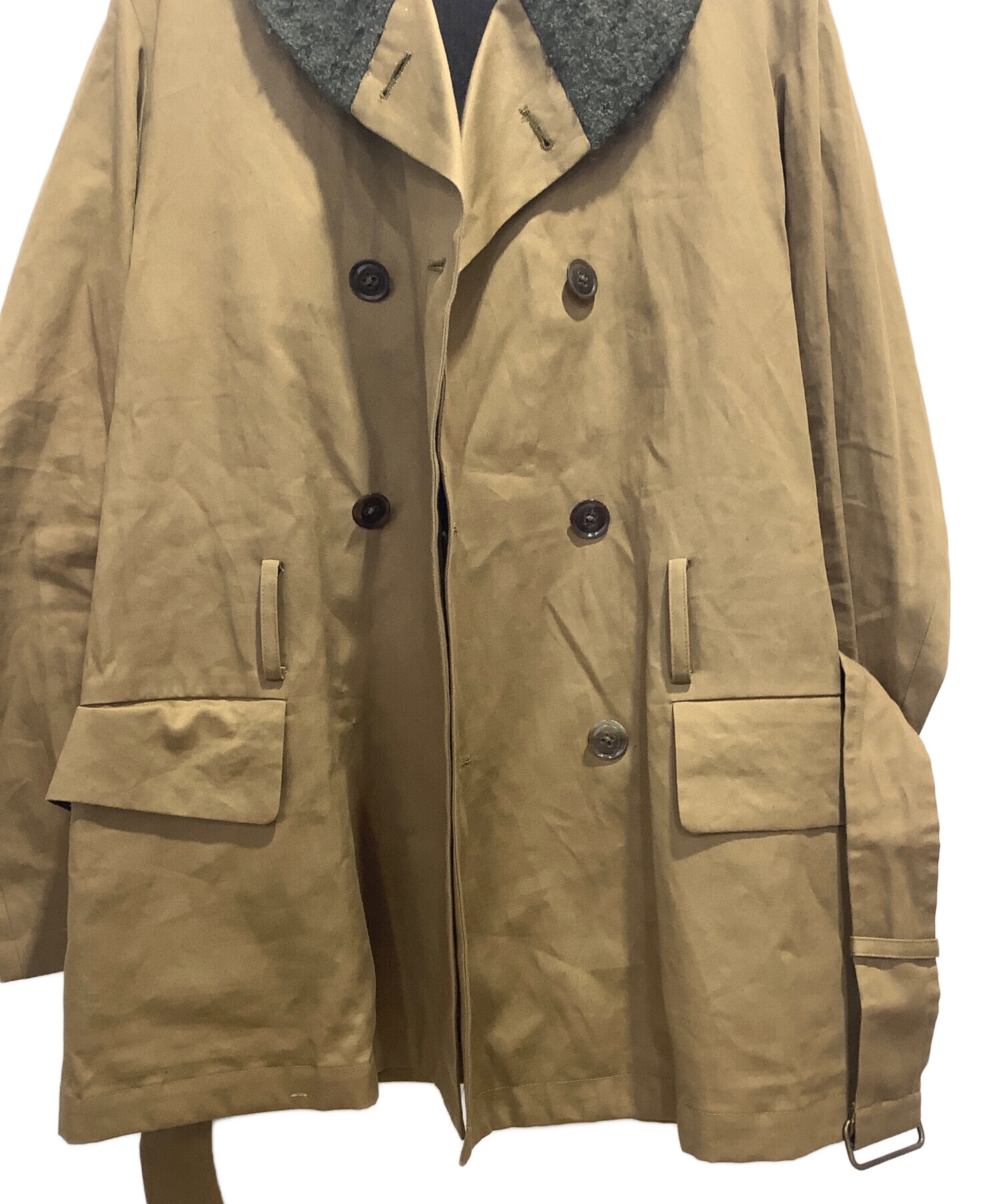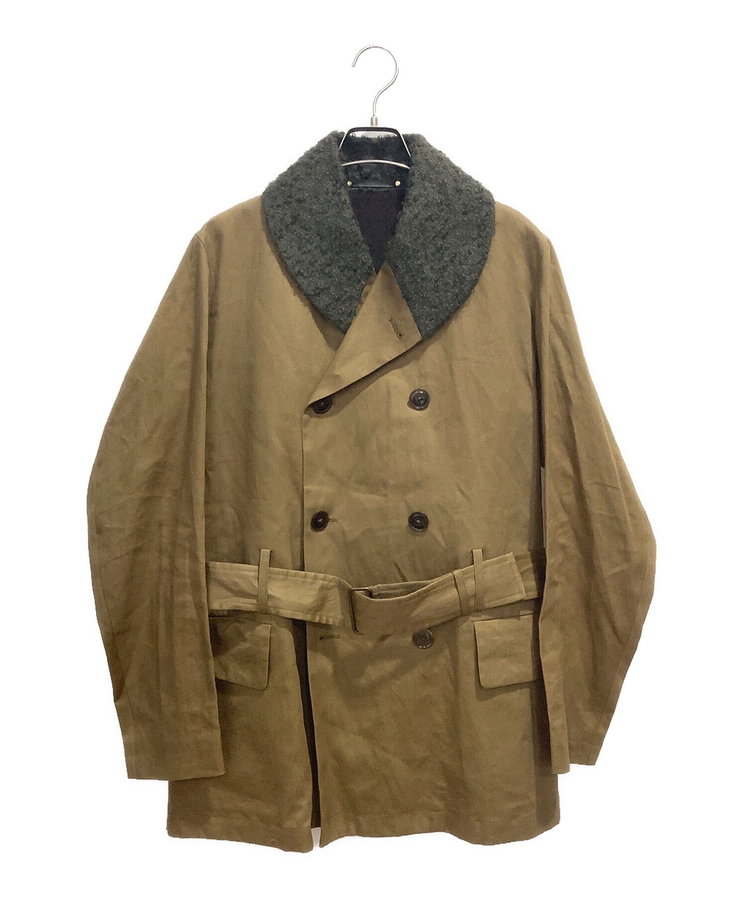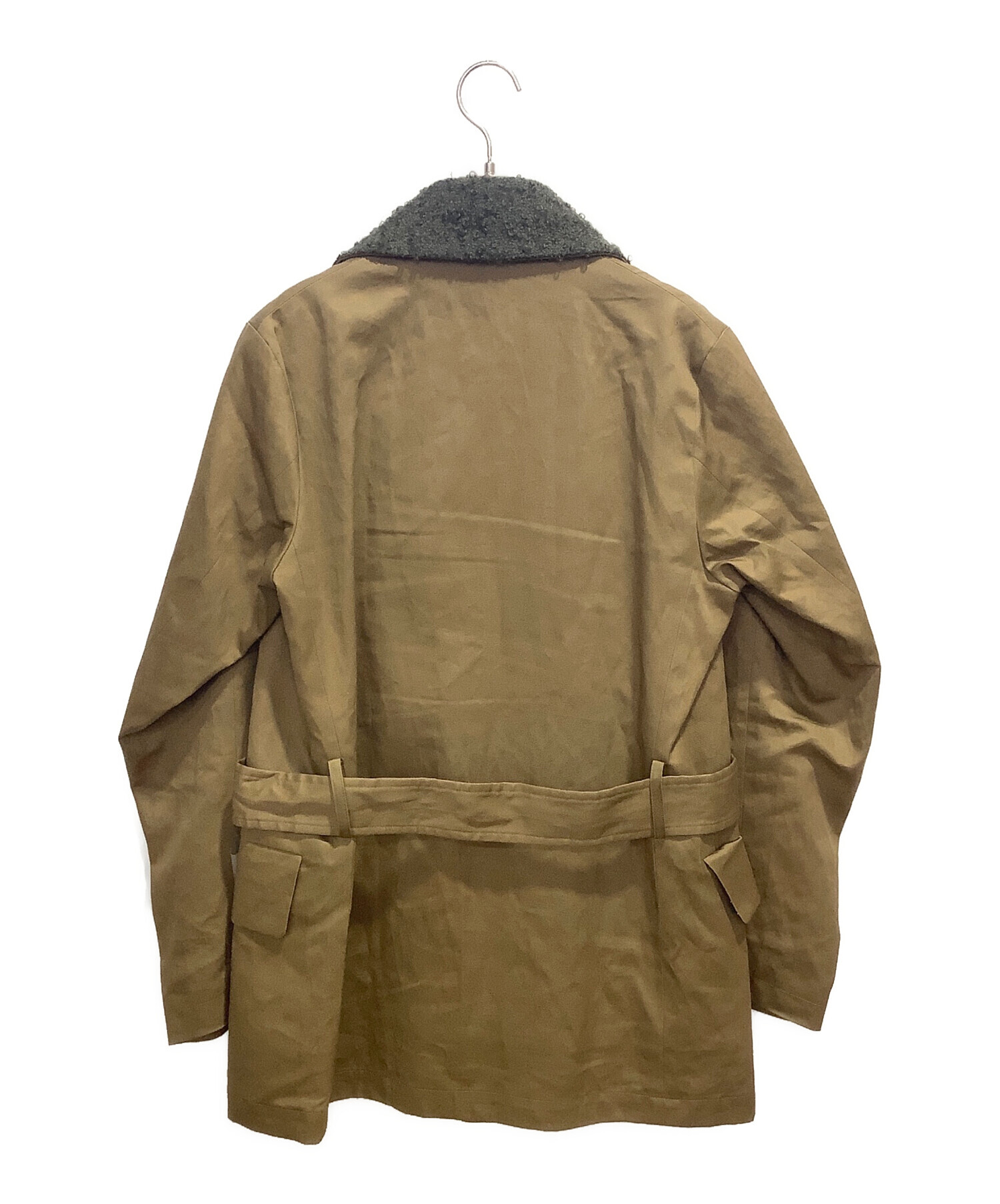 | 素材 | 表地:コットン81% 麻19% 部分使い: モヘヤ 45% アルパカ40% ナイロン10% 羊毛5% 衿吊り:合成皮革 裏地(身頃):毛 ナイロン 裏地(袖裏):ナイロン |