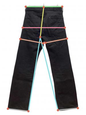 ファスナー、ボタンフライ部分の下部の端から端を2倍した長さ