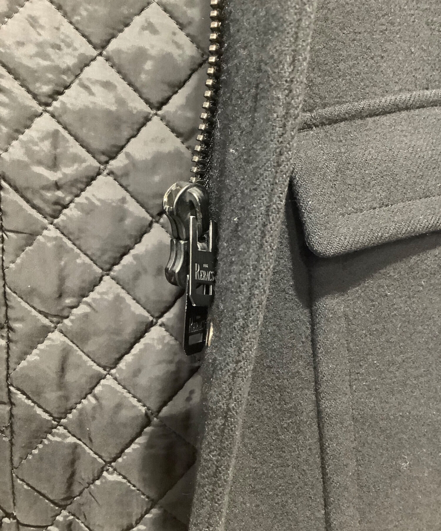 | 素材 | 表地:ウール100% 裏地(前身頃裏・袖裏):キュプラ100% 裏地(後身頃裏・フード裏):キュプラ100% 中綿:ポリエステル100% 別布:ウール58% シルク42% |