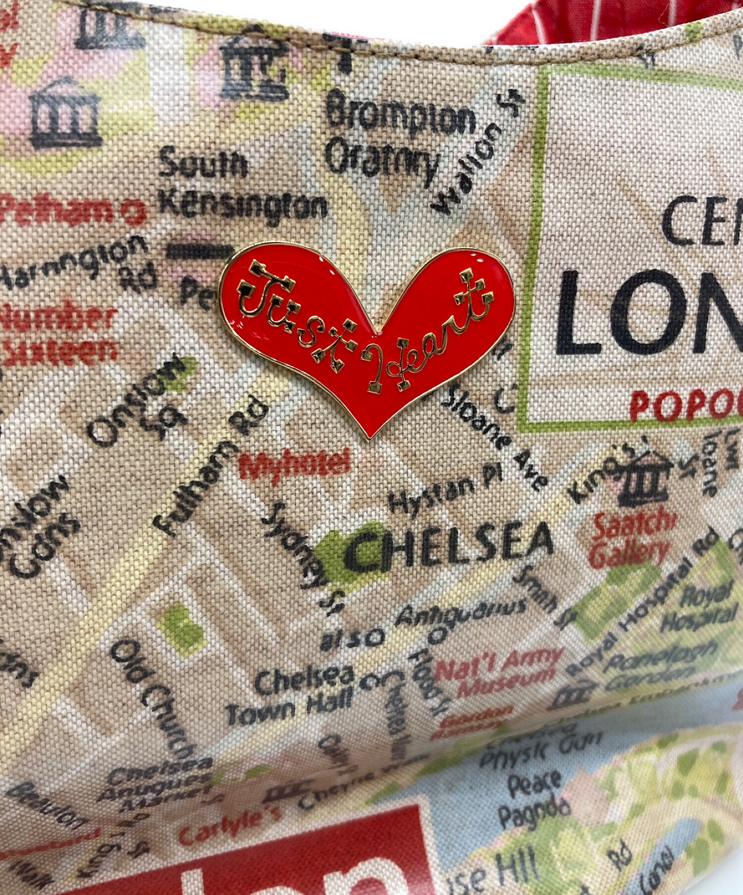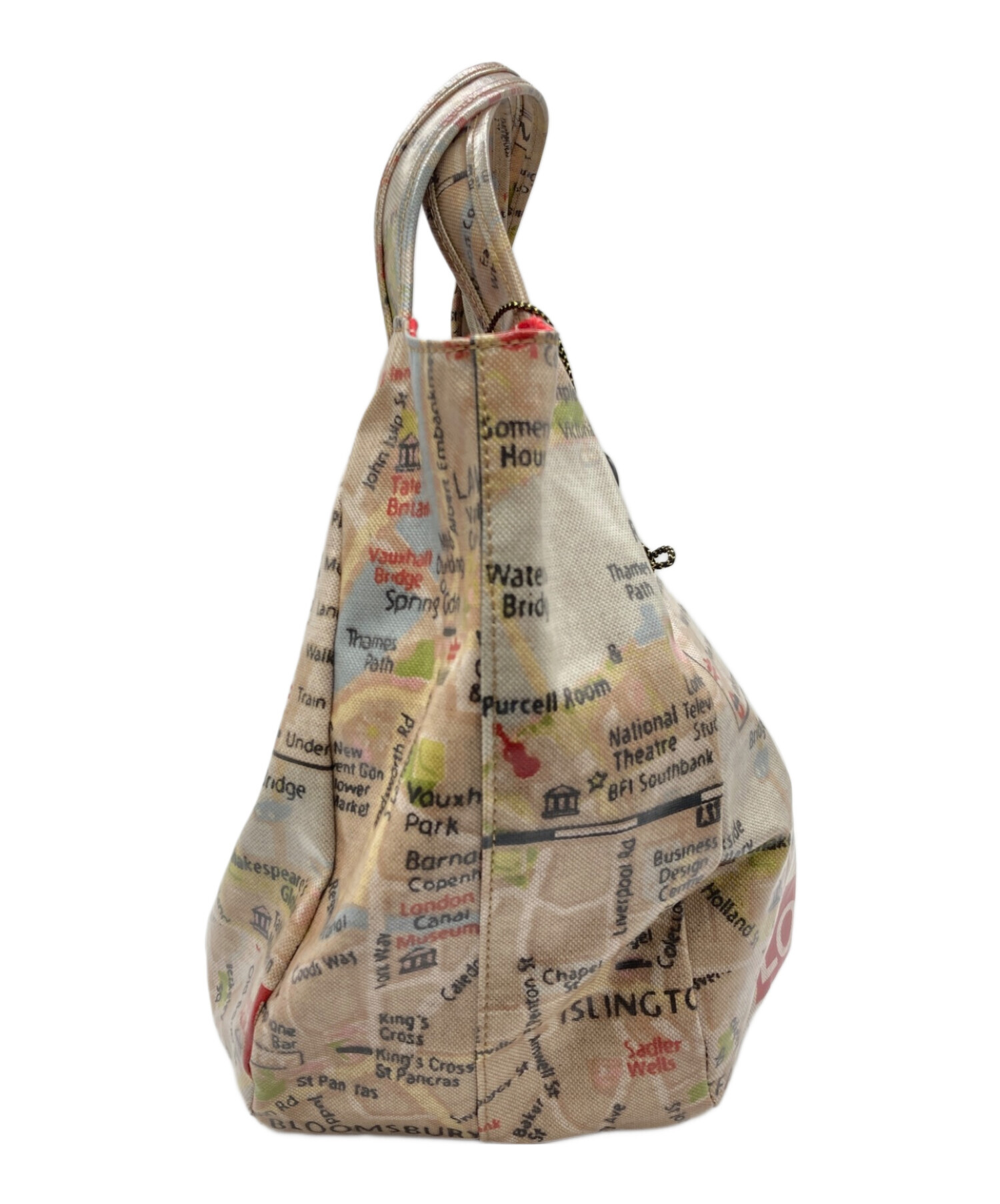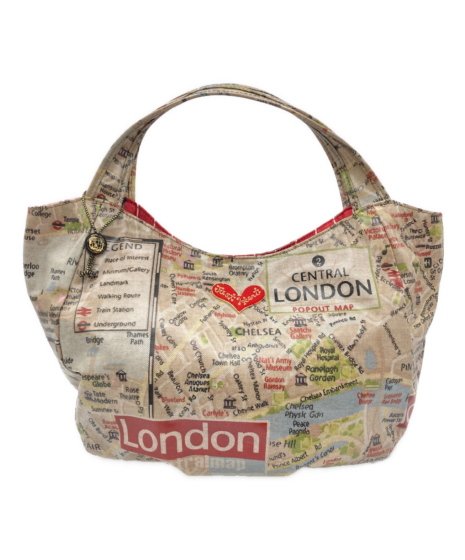 スタッフコメント PVCコーティング加工で汚れや水濡れに強くお手入れも簡単で雨の日のお出掛けに最適です。ロンドンの文字やマップ上の名称「Just Heart」のロゴプレートなど印象的でアクセントになるアイテムです。