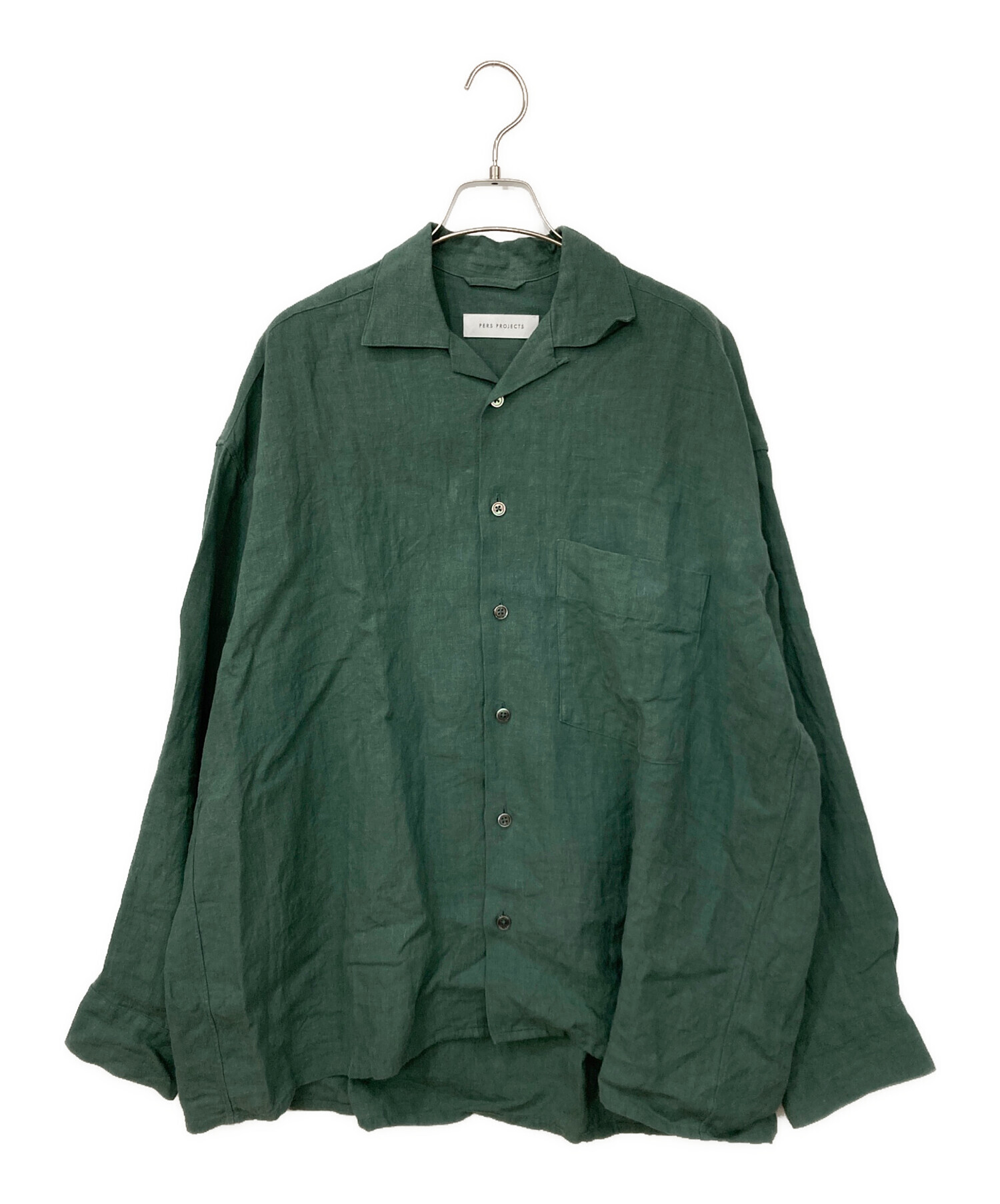 • PERS PROJECTS(パースプロジェクト)PERS PROJECTS (パースプロジェクト) リネンオープンシャツ グリーン サイズ:03の古着・服飾アイテム 袖スレ有
