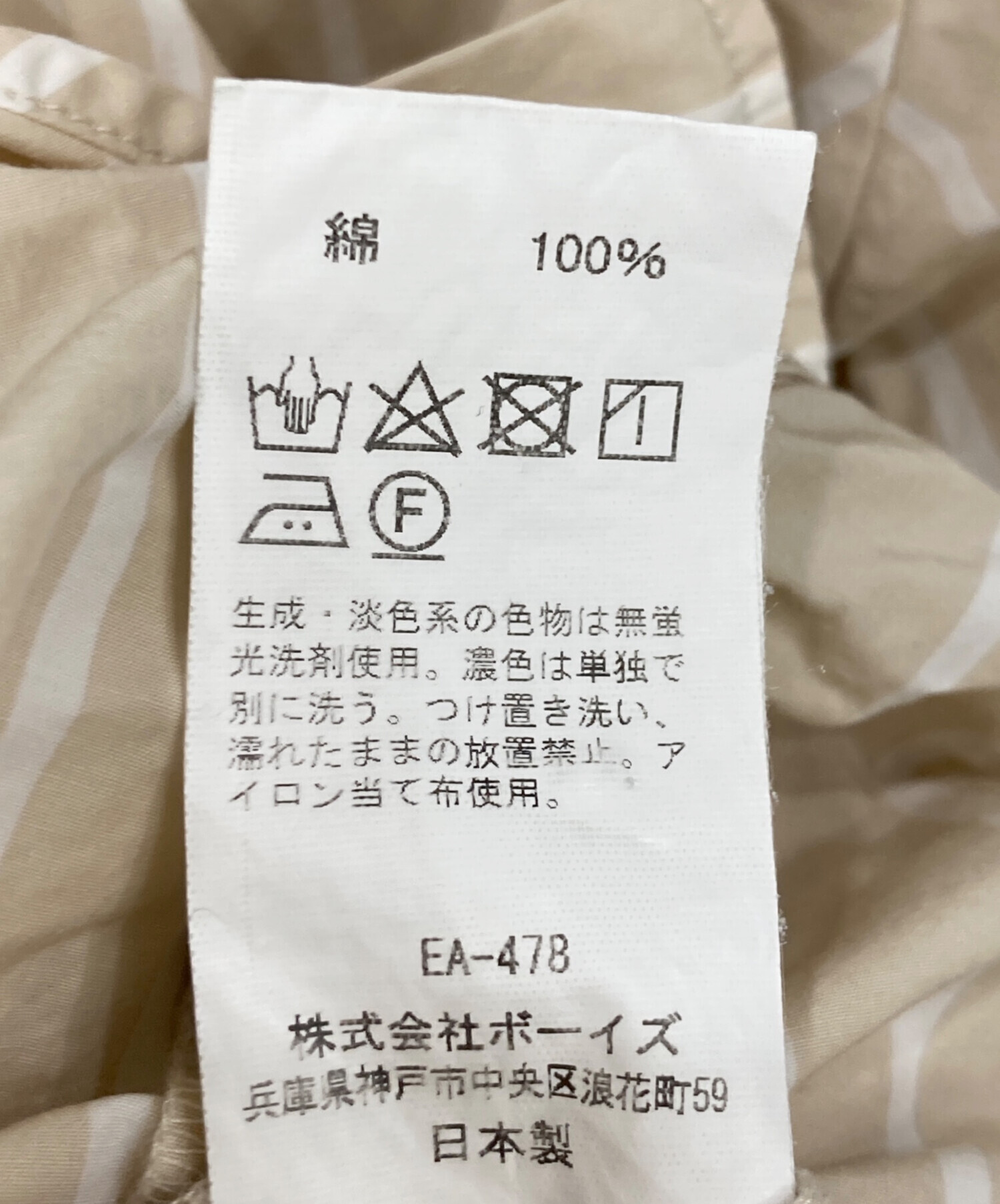 目立つシミや汚れ、におい等がある場合は商品画像や説明文にて極力表記させていただいておりますが、中古品という商品の特性上、全ての瑕疵や不備、洋服直し箇所を撮影・記載をすることは難しくなっております。また、ほとんどのアイテムは店頭と併売しておりますため、出品掲載時からコンディションが変動している場合もございます。あらかじめご了承くださいませ。