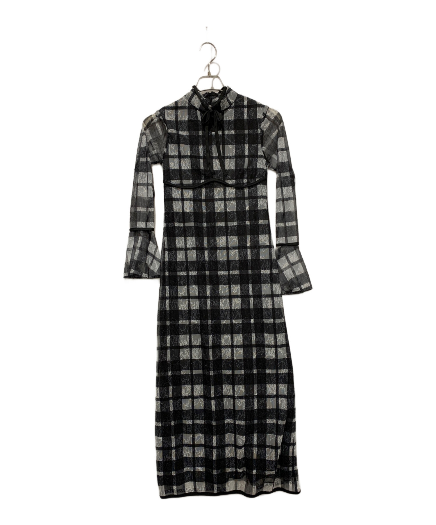 パイピングチェックレースロングワンピース