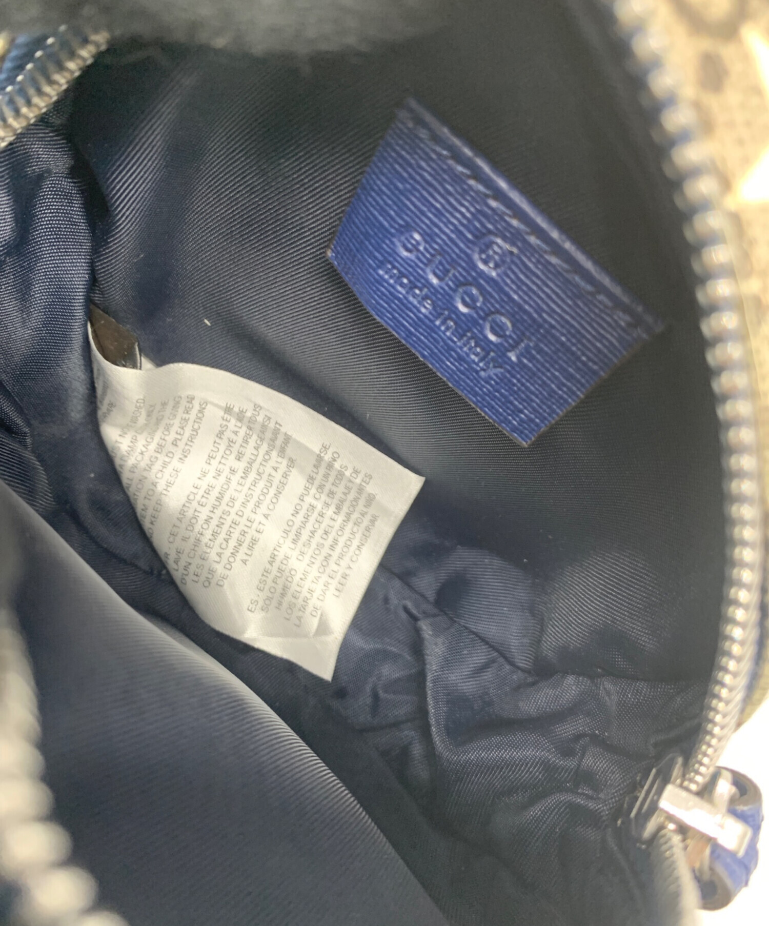 • GUCCI(グッチ)GUCCI (グッチ) ラウンドミニウエストポーチ グレー×ネイビーの古着・服飾アイテム 汚れがございます