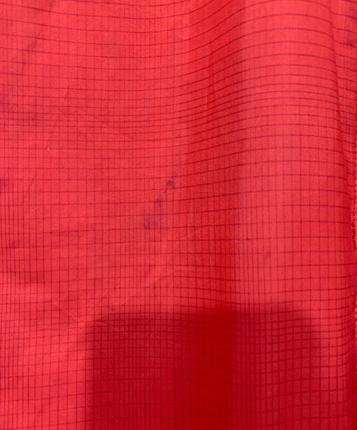 • Patagonia(パタゴニア)Patagonia (パタゴニア) マイクロパフフーディー レッド サイズ:Lサイズの古着・服飾アイテム 表右側みぞおち付近に汚れ