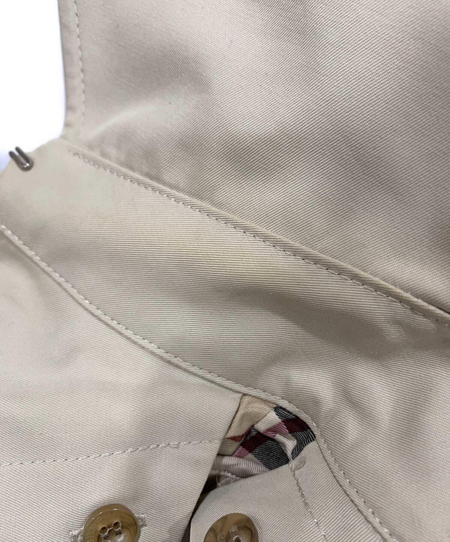 目立つシミや汚れ、におい等がある場合は商品画像や説明文にて極力表記させていただいておりますが、中古品という商品の特性上、全ての瑕疵や不備、洋服直し箇所を撮影・記載をすることは難しくなっております。また、ほとんどのアイテムは店頭と併売しておりますため、出品掲載時からコンディションが変動している場合もございます。あらかじめご了承くださいませ。