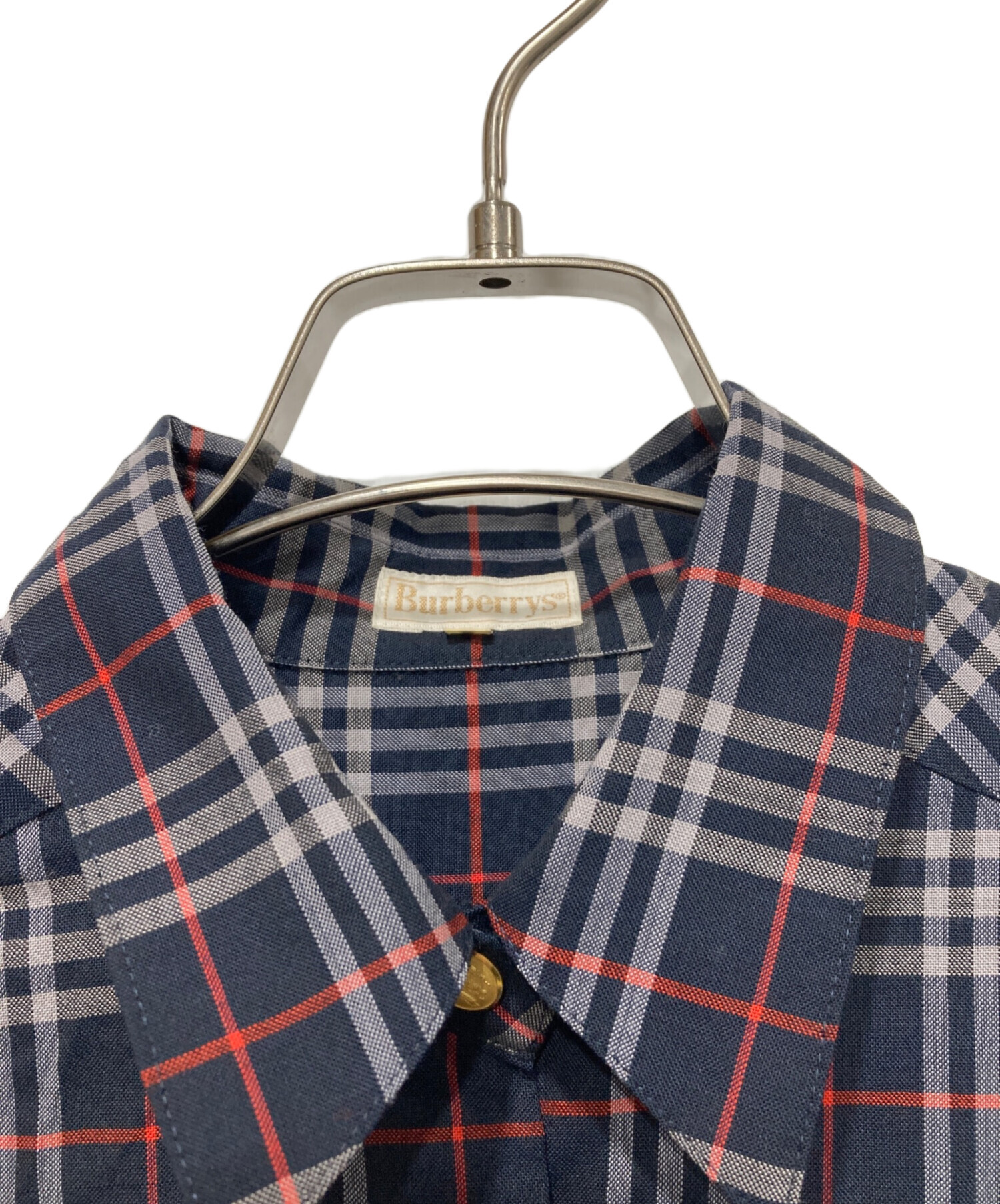 • Burberry's(バーバリー)Burberry's (バーバリー) 金釦半袖シャツ ネイビー×レッド サイズ:11ARの古着・服飾アイテム