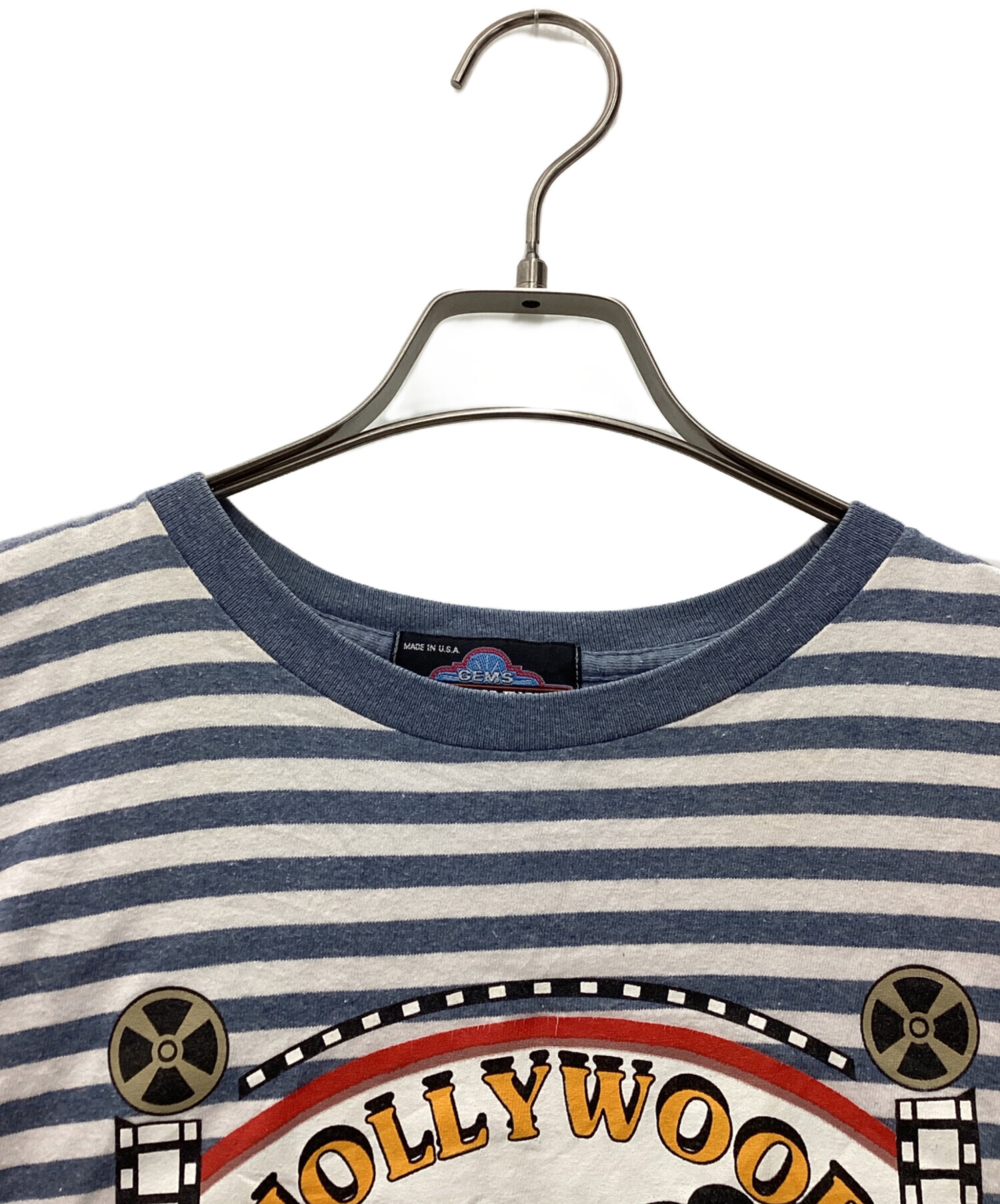 • HOLLOOW MICKEY(-)HOLLOOW MICKEY (-) 半袖カットソー MADE IN USA スカイブルー サイズ:SIZE 不明の古着・服飾アイテム シミ、ヨゴレ有