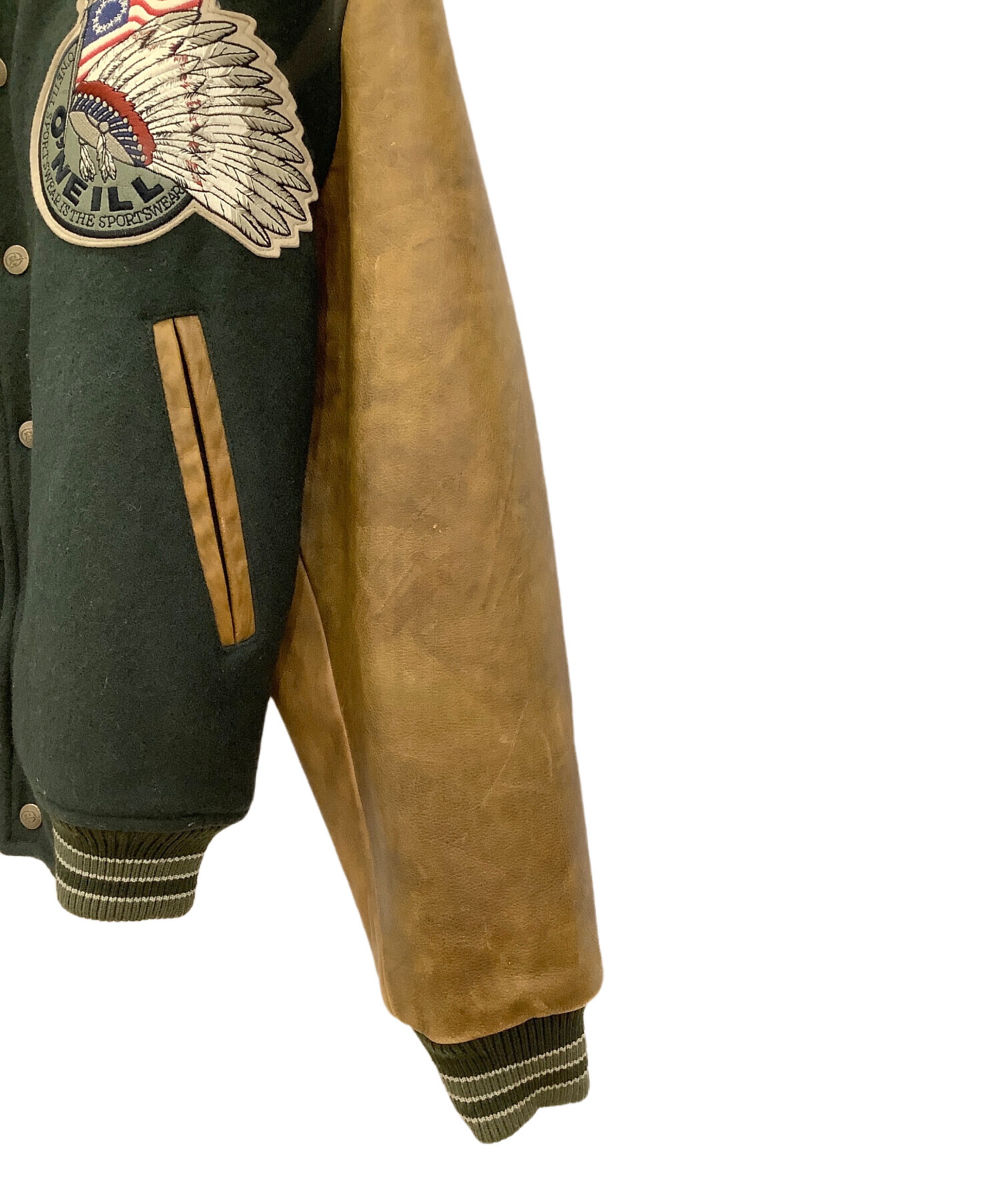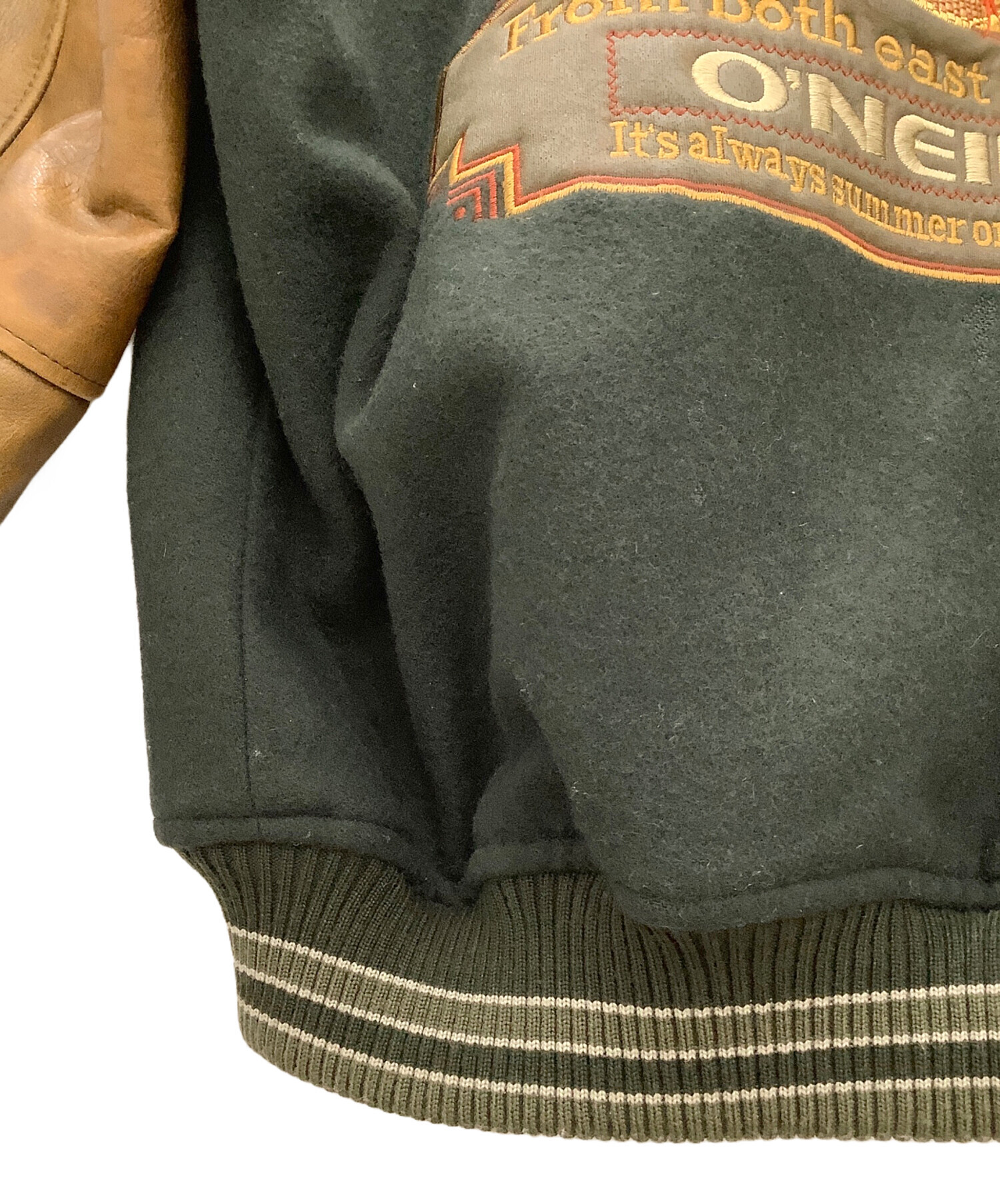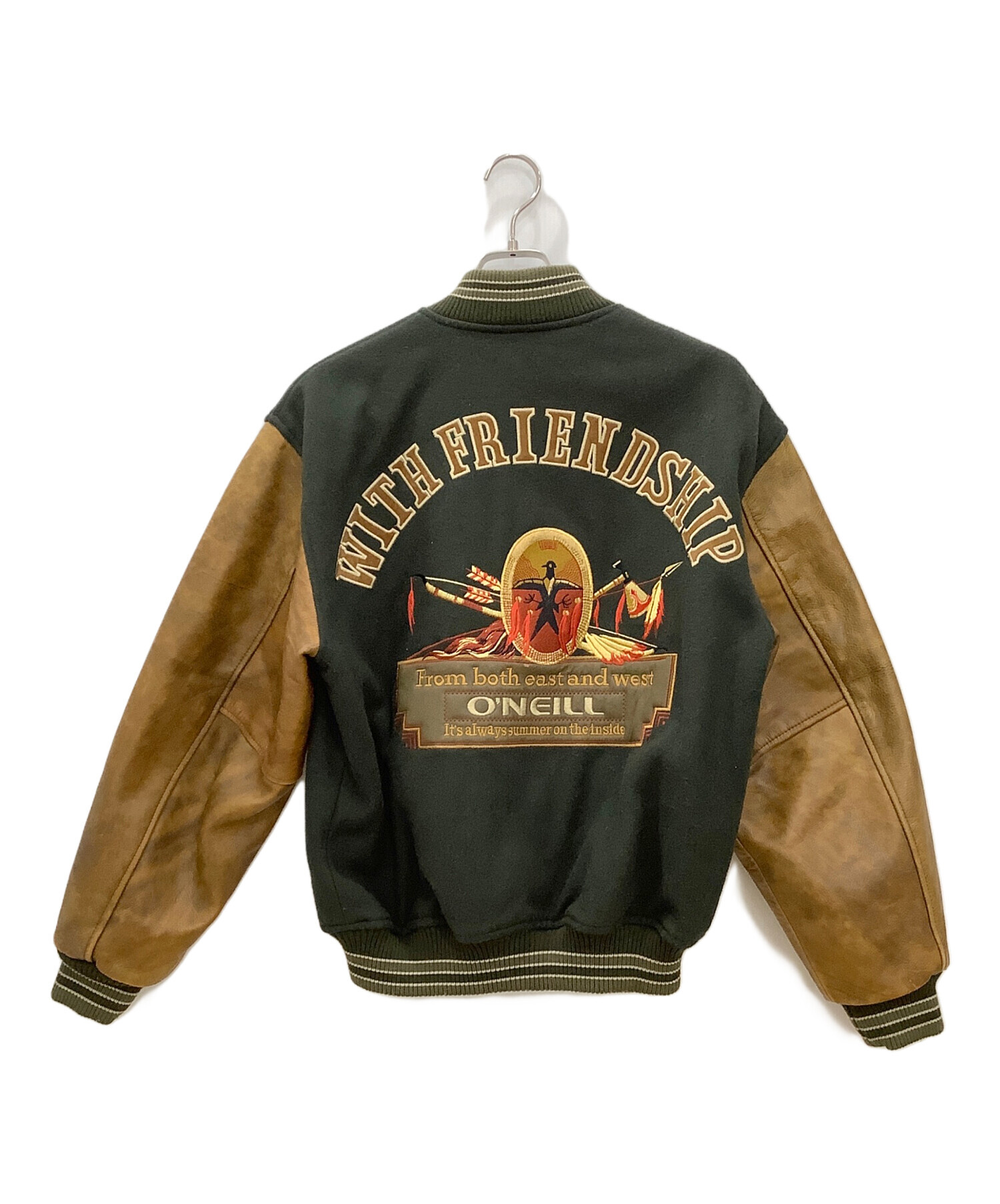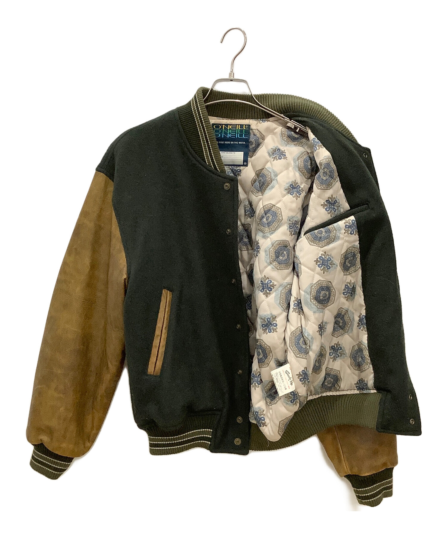 レザー切替スタジャン O'NEILL メンズ ブラウン×グリーン 牛革 日本製