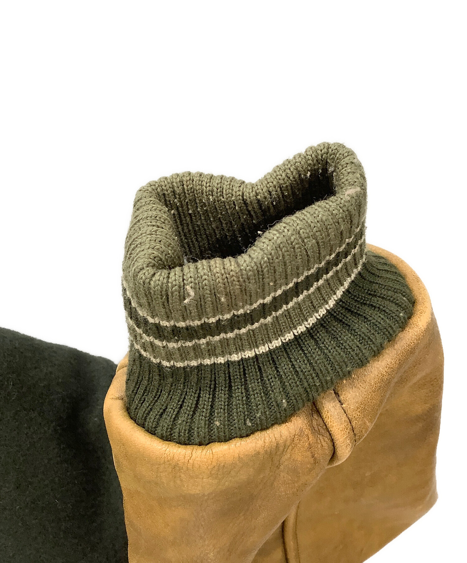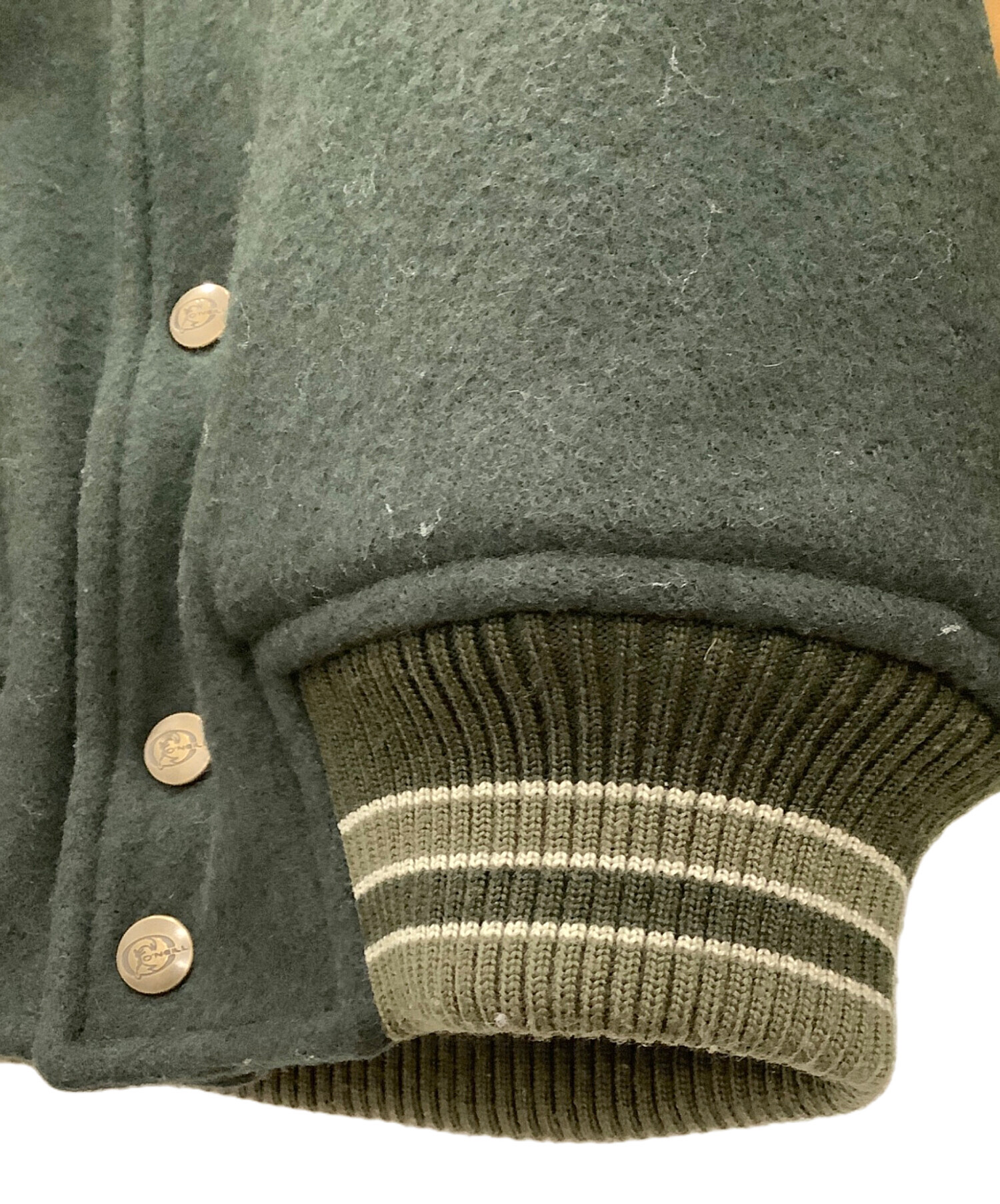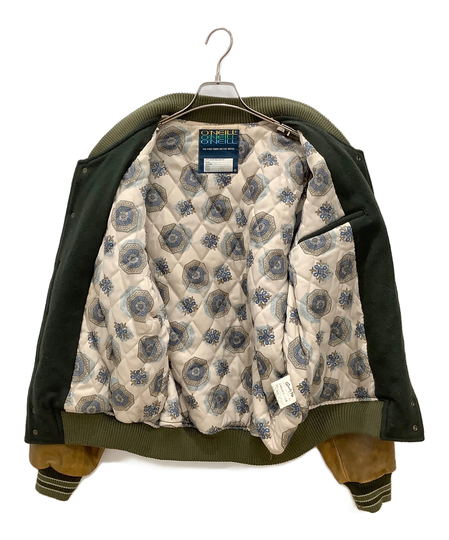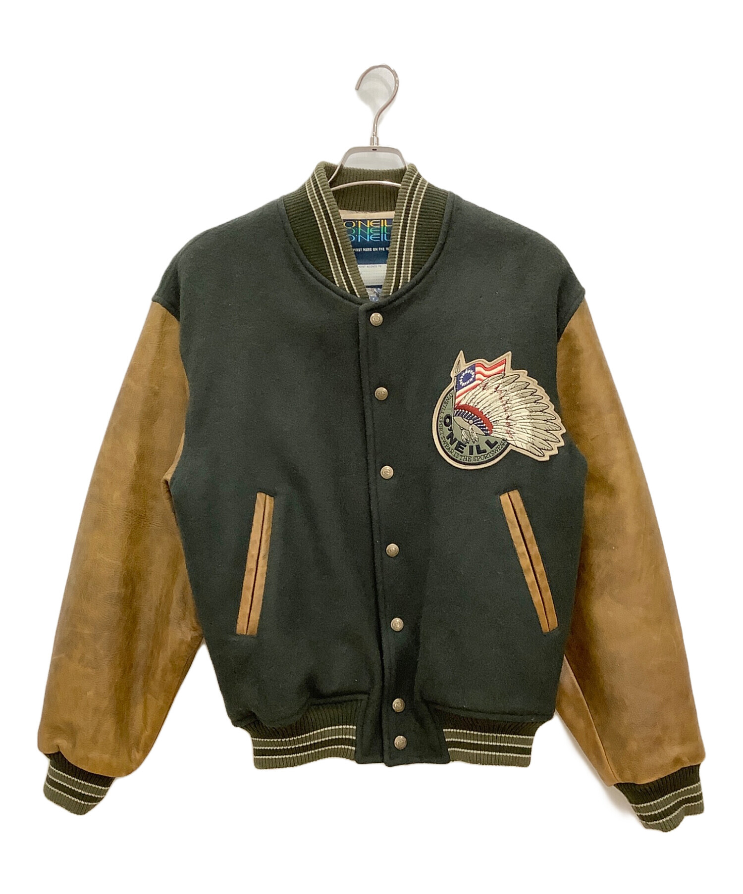 レザー切替スタジャン O'NEILL メンズ ブラウン×グリーン 牛革 日本製