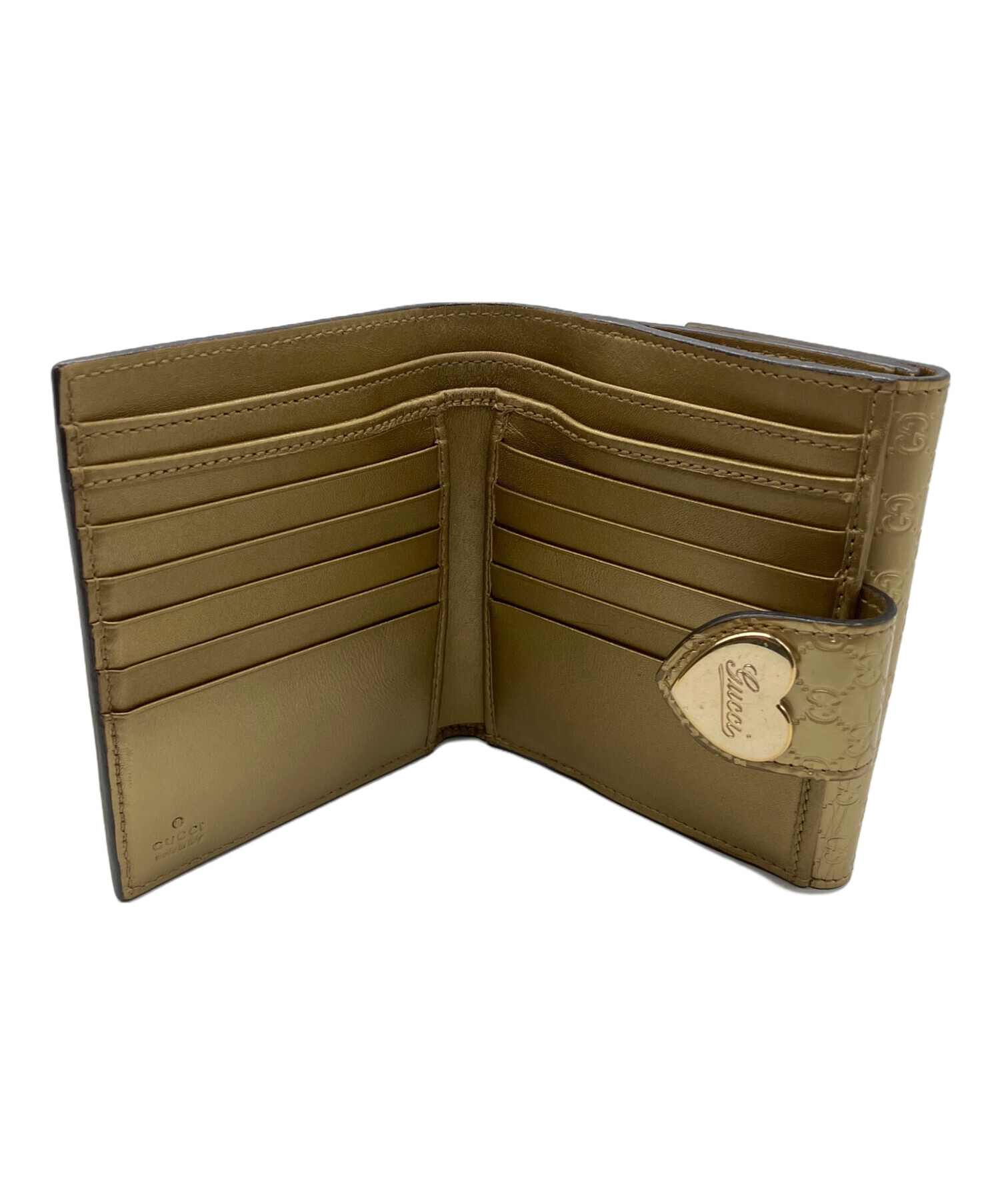 2つ折り財布 GUCCI ゴールド GG総柄 ハートプレート