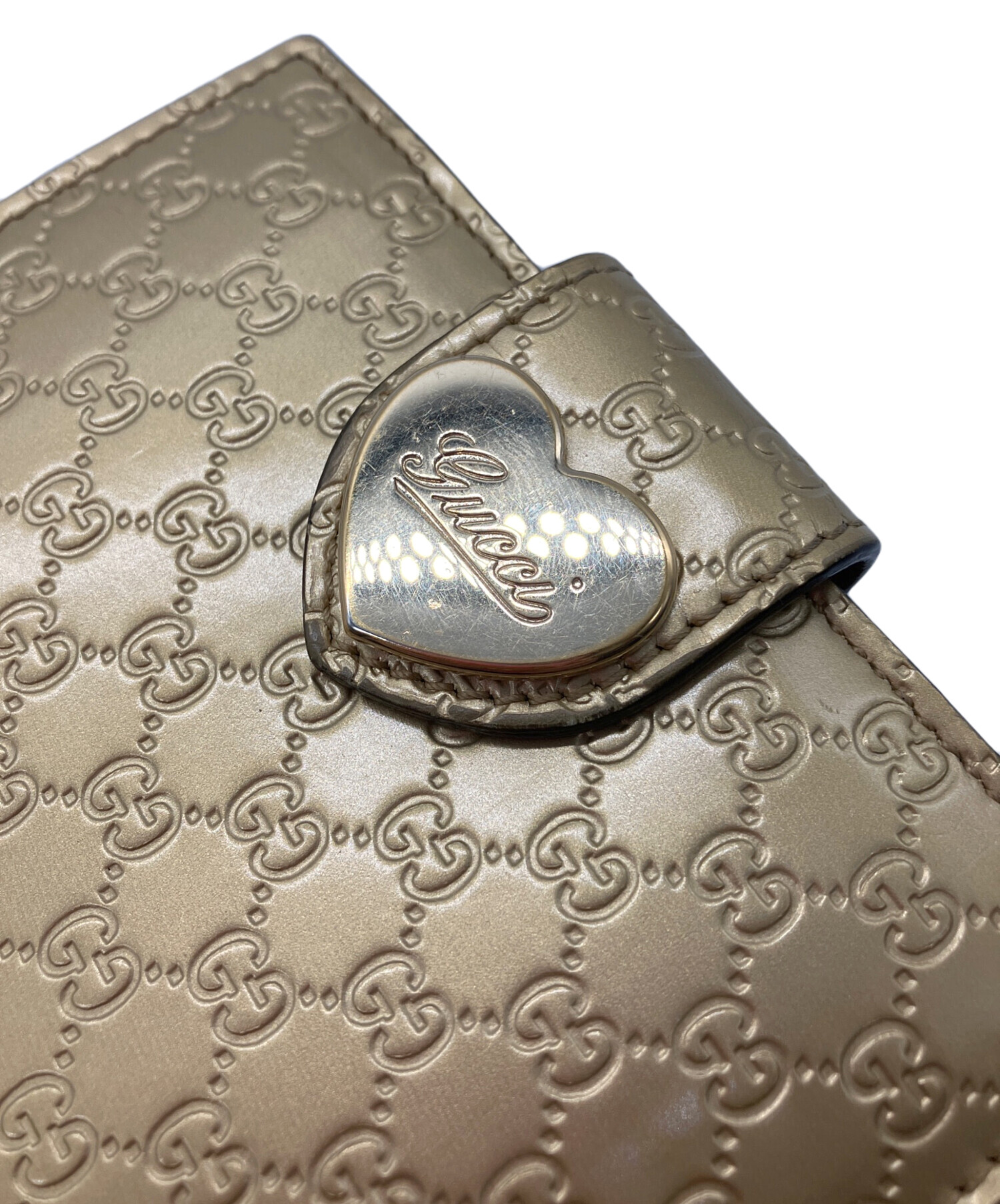| アイテム名 | 2つ折り財布 GUCCI ゴールド GG総柄 ハートプレート |