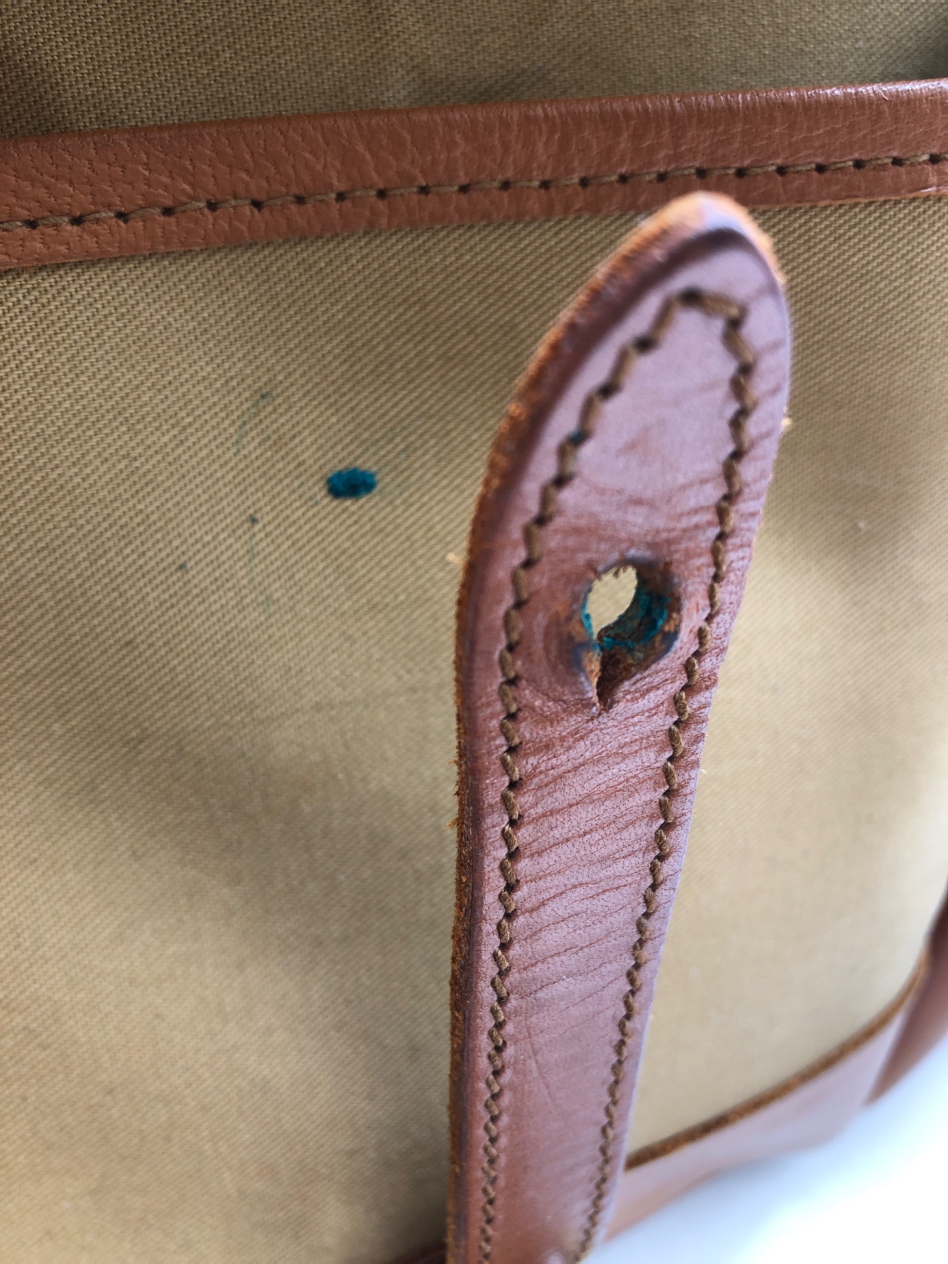 • Billingham(ビリンガム)Billingham (ビリンガム) ショルダーバッグ カーキ×ブラウンの古着・服飾アイテム ヨゴレ有