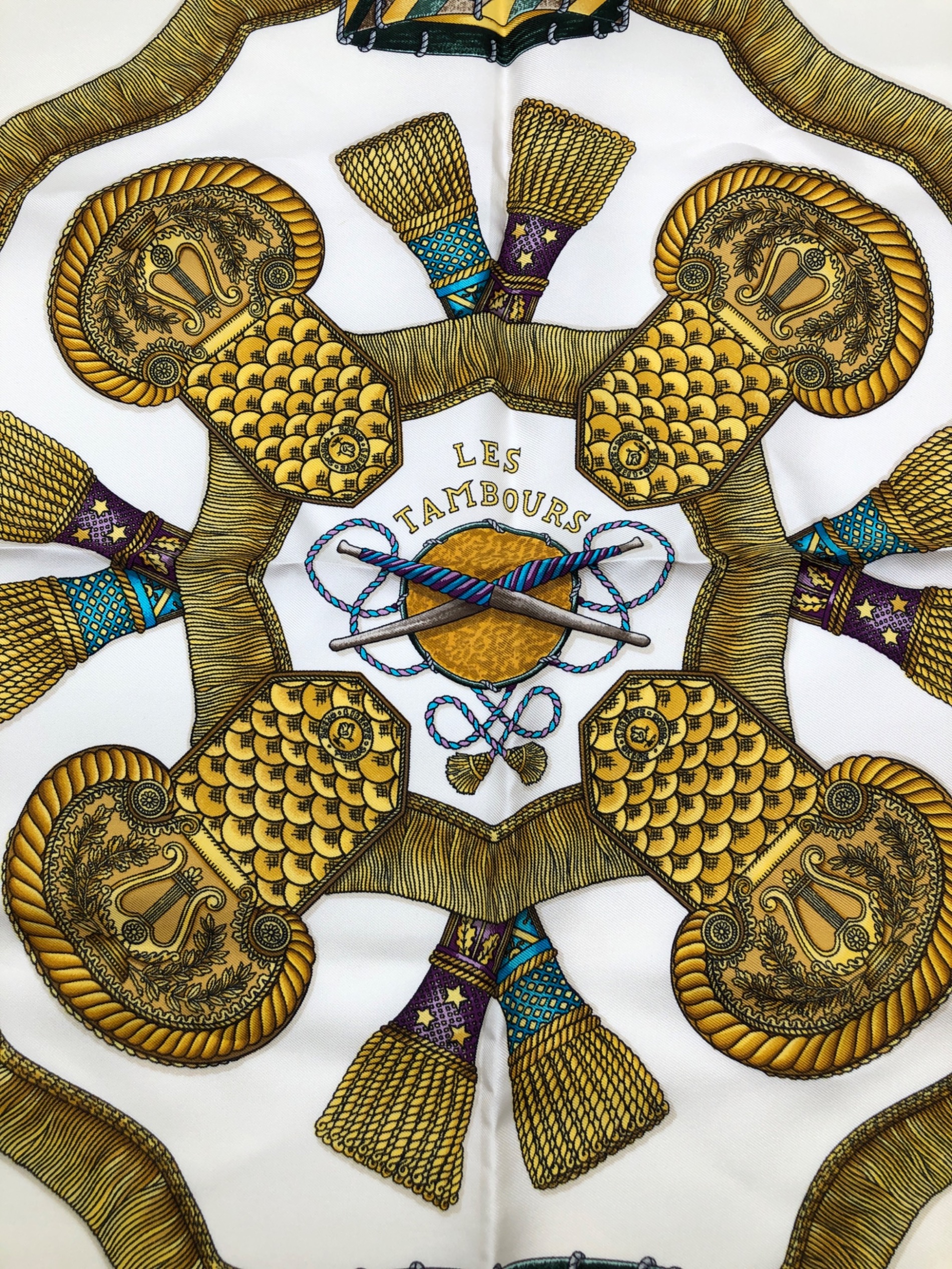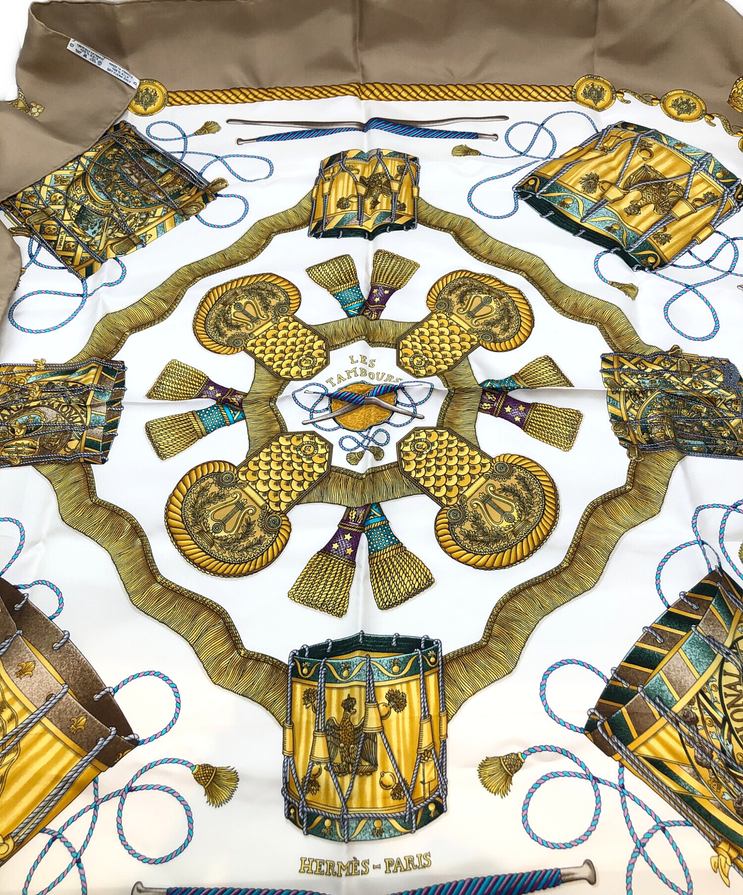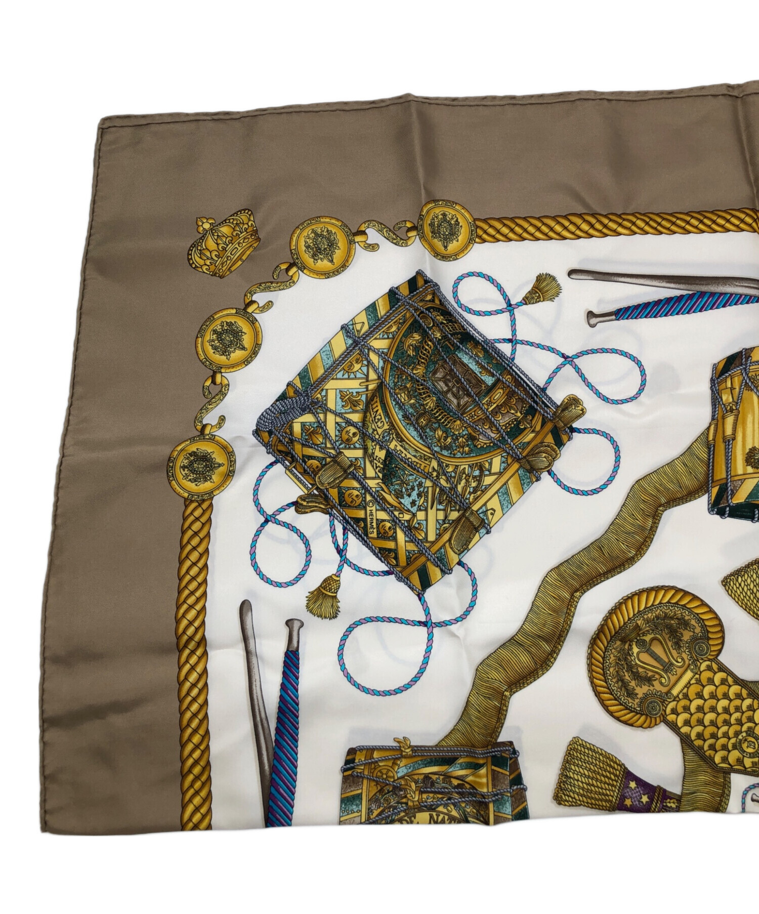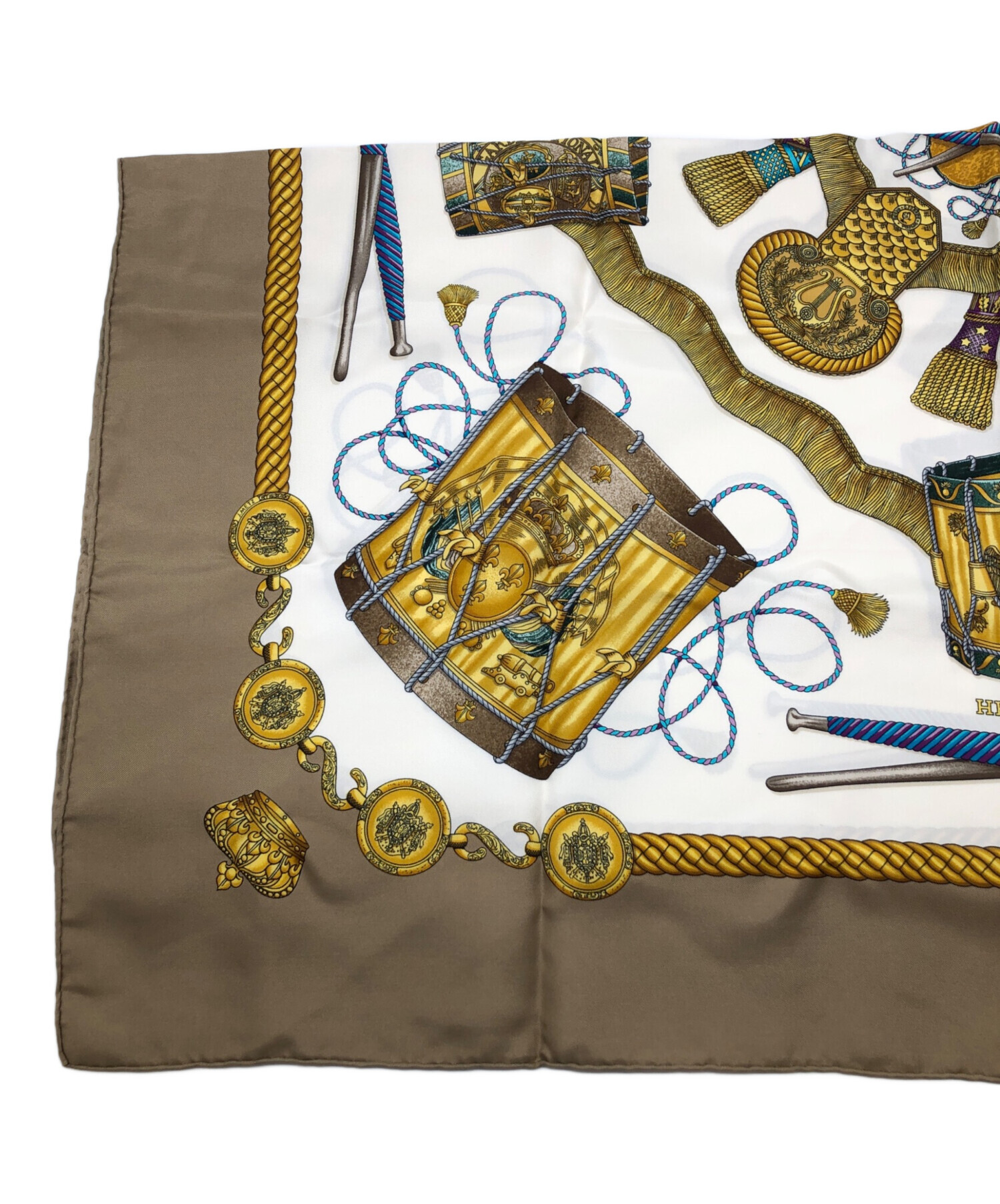 • HERMES(エルメス)HERMES (エルメス) 	LES TAMBOURS / タンブールの太鼓 ベージュ×ホワイトの古着・服飾アイテム 折れ線の跡が斜めについております。