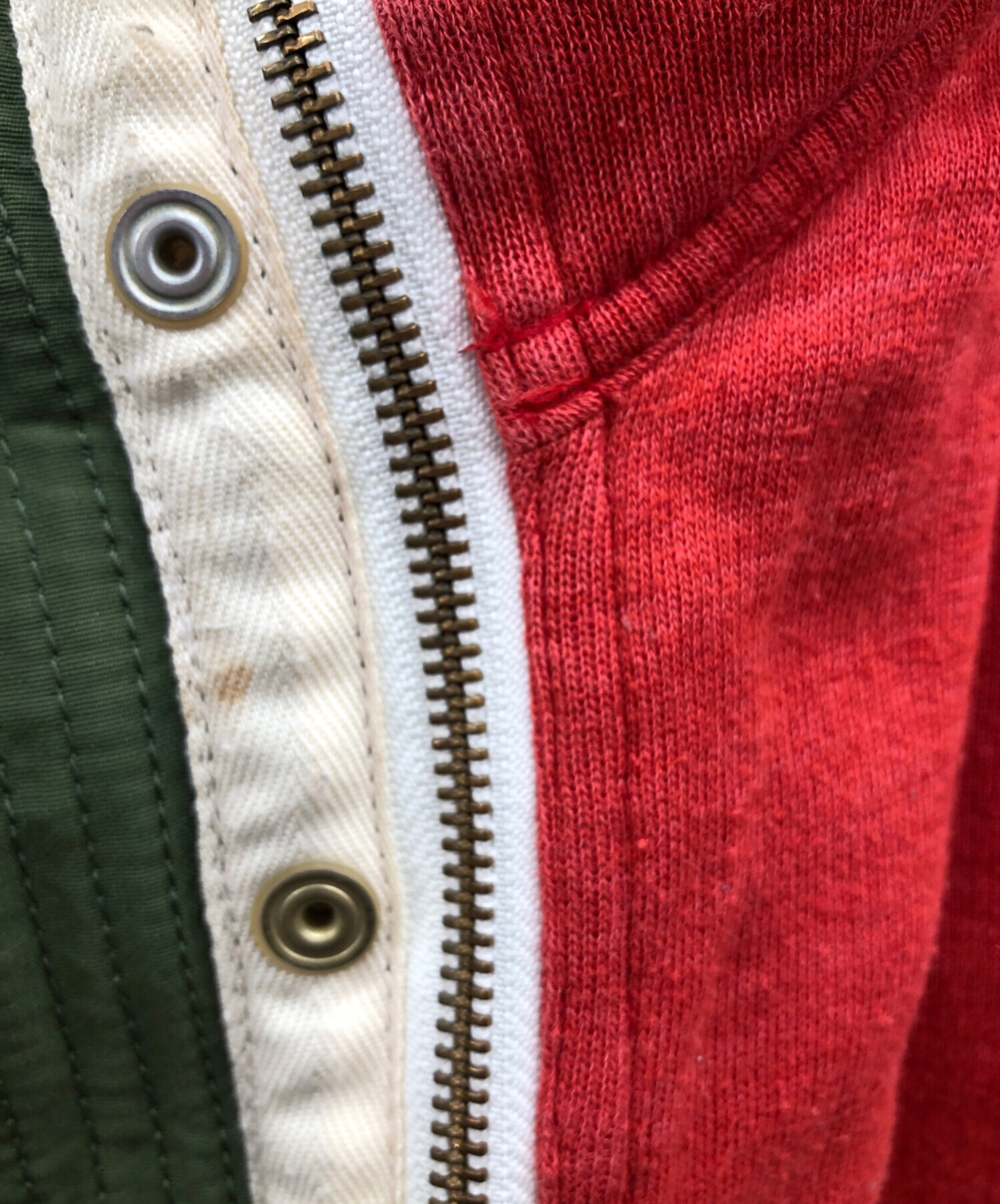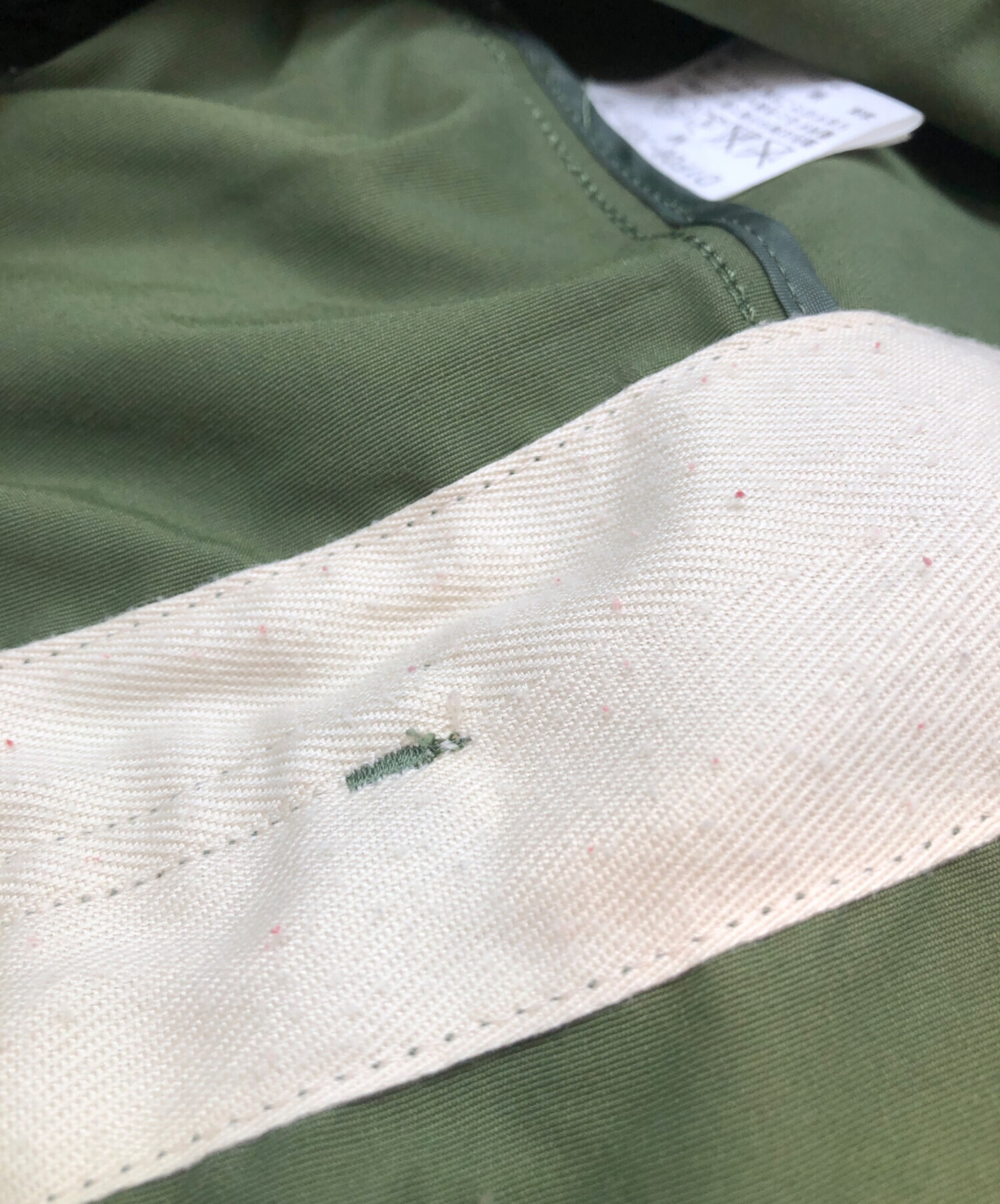 目立つシミや汚れ、におい等がある場合は商品画像や説明文にて極力表記させていただいておりますが、中古品という商品の特性上、全ての瑕疵や不備、洋服直し箇所を撮影・記載をすることは難しくなっております。また、ほとんどのアイテムは店頭と併売しておりますため、出品掲載時からコンディションが変動している場合もございます。あらかじめご了承くださいませ。