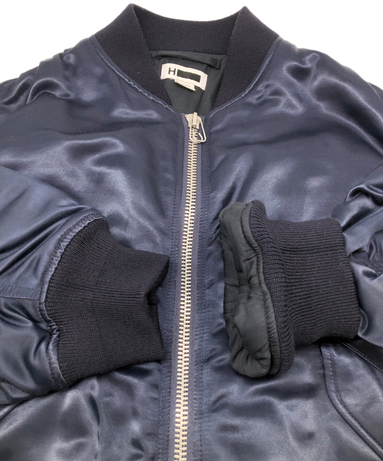 • H BEAUTY&YOUTH(エイチ ビューティー&ユース)H BEAUTY&YOUTH (エイチ ビューティー&ユース) MA-1ジャケット ネイビー サイズ:Mの古着・服飾アイテム 裏地に毛羽立ち、毛玉がございます。